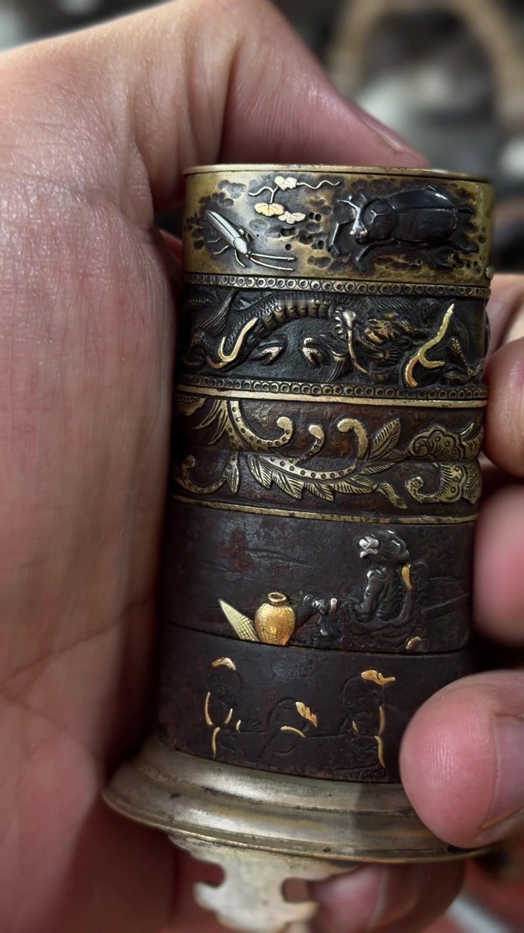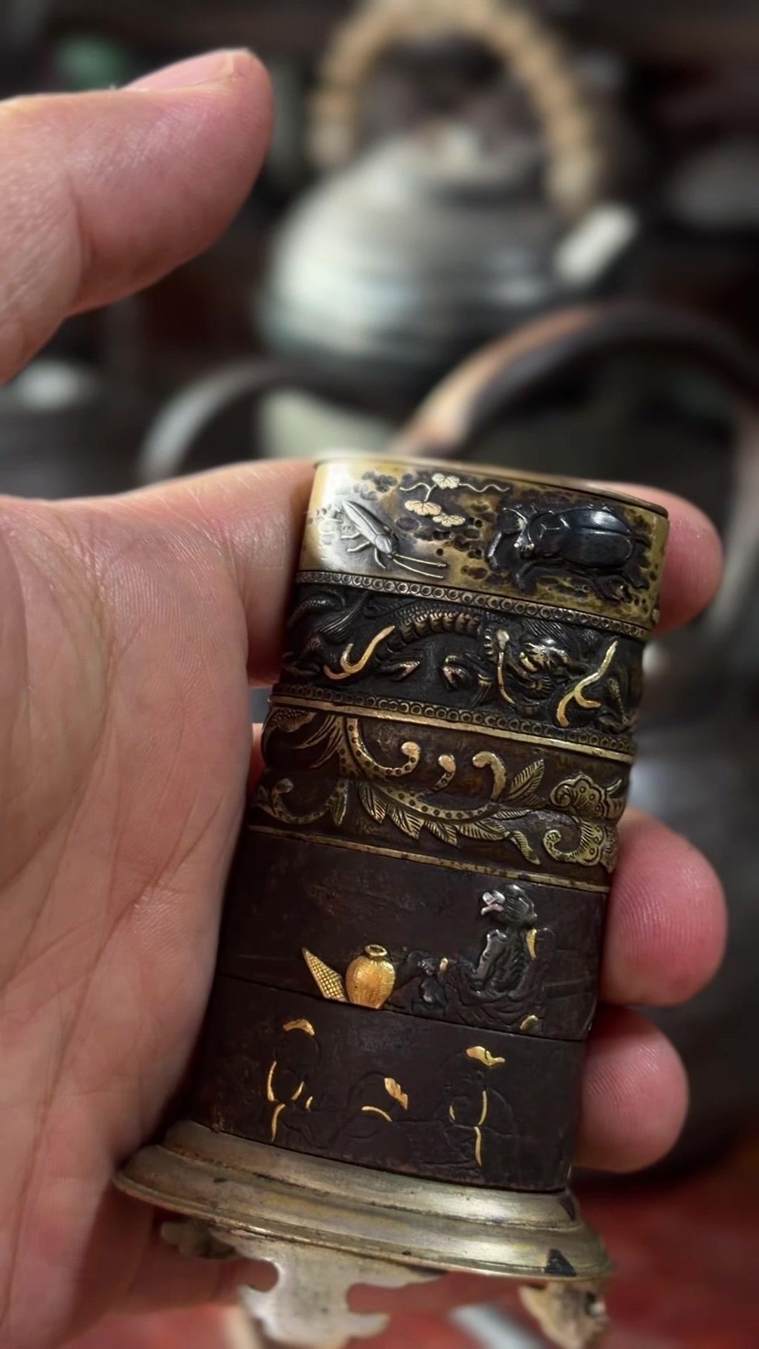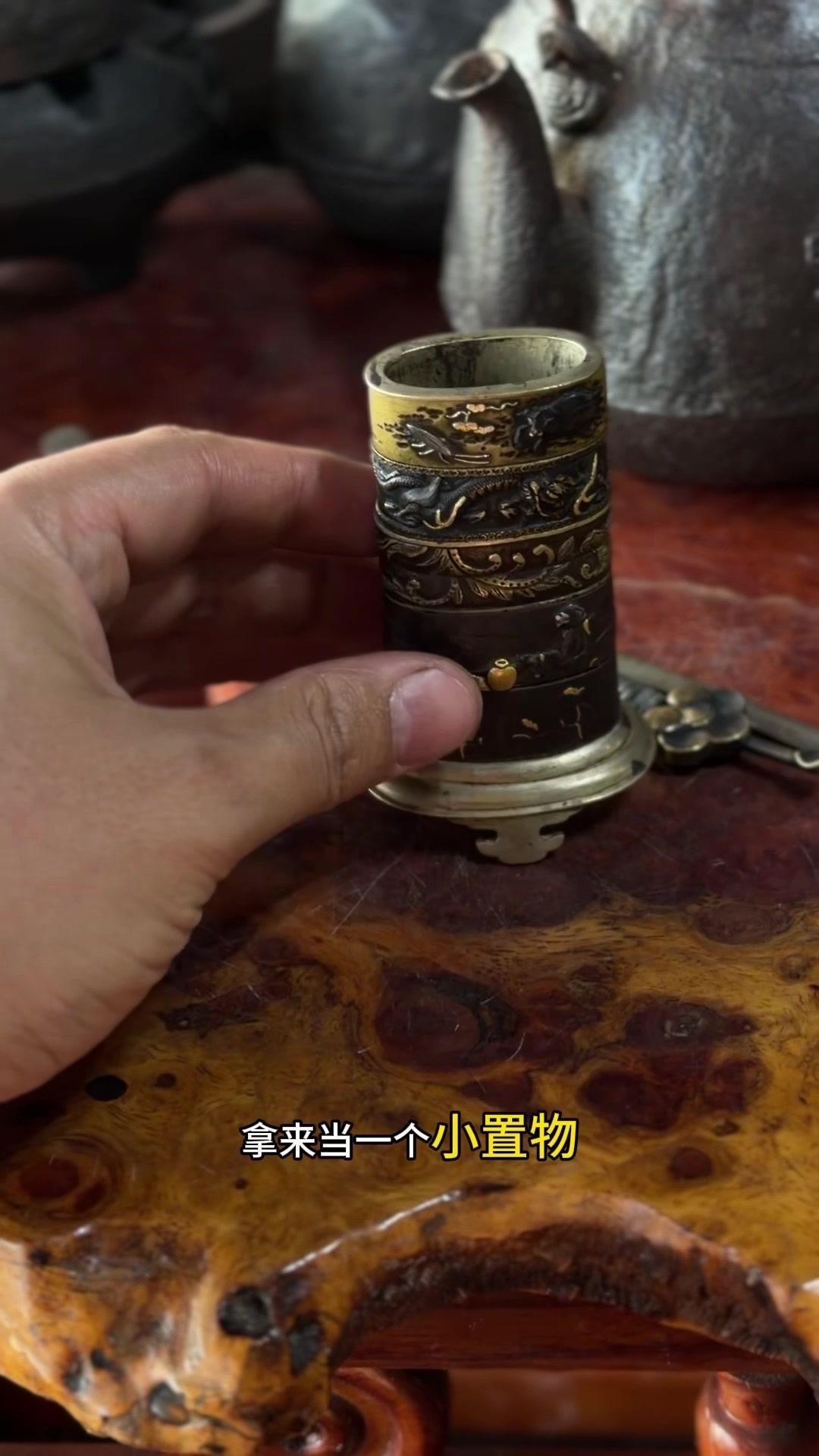 遇到喜欢的物件真的走不动道!💡古器新用太惊艳!江户时期的刀盘,日本顶级金工太绝了~刻雕、镶嵌,足足5种工艺都是顶配,每一处细节都透着精致。 放在家里当小置物架,瞬间提升氛围感,实用又有格调。