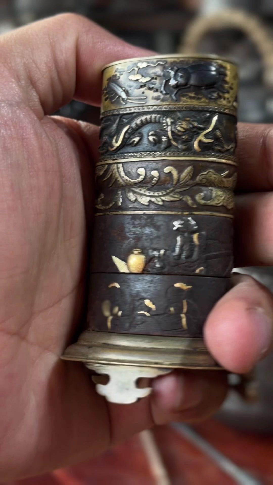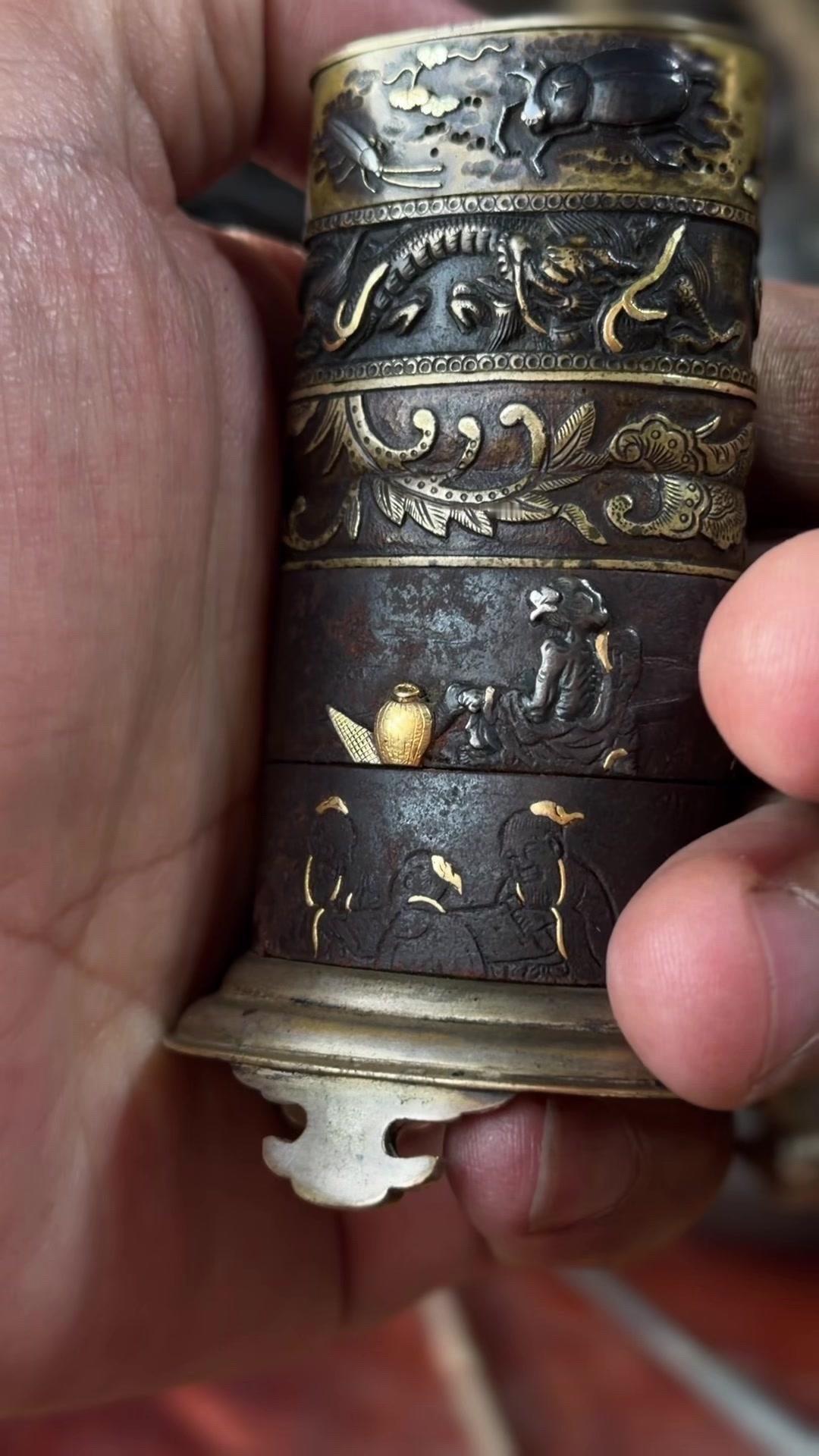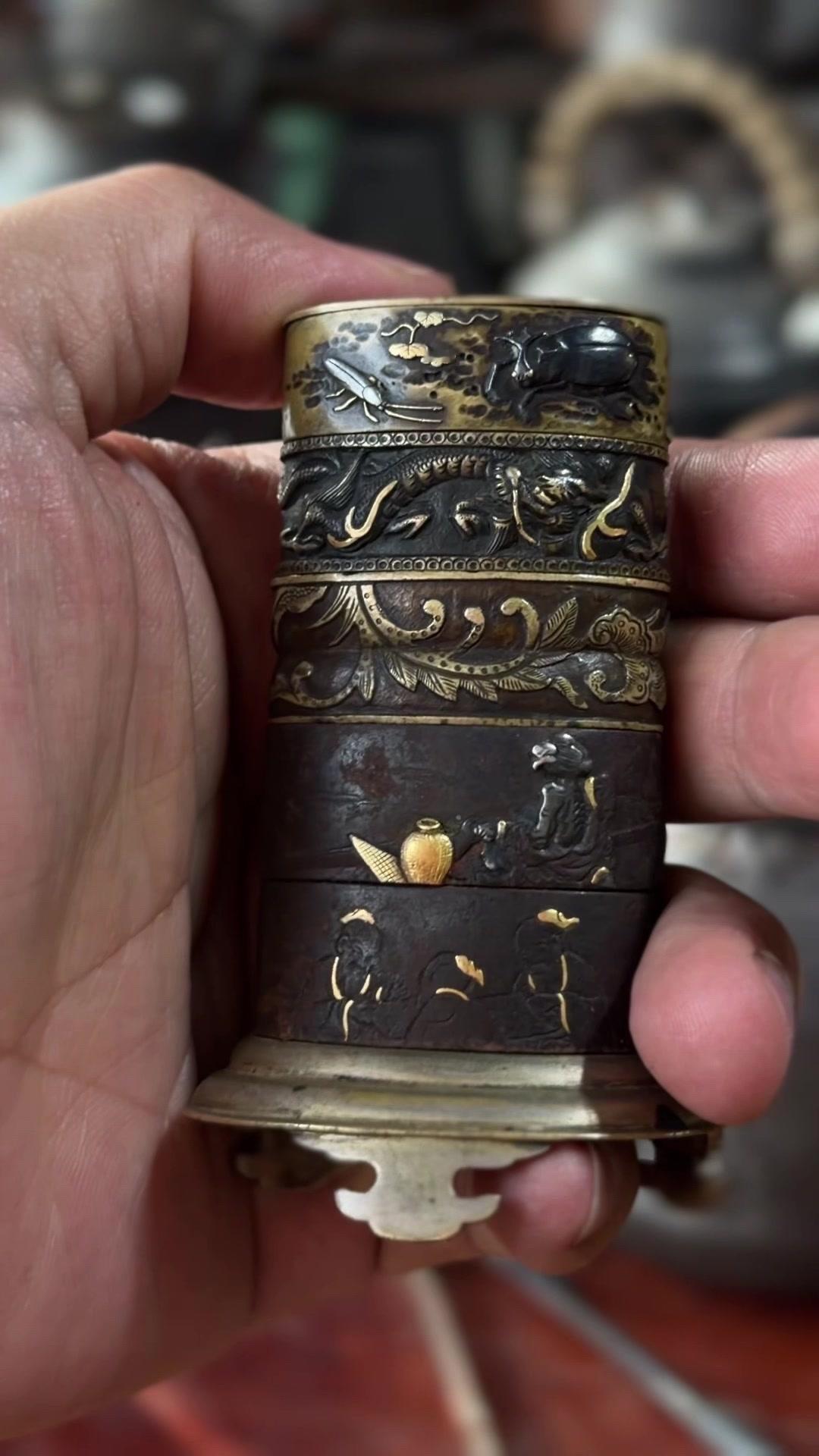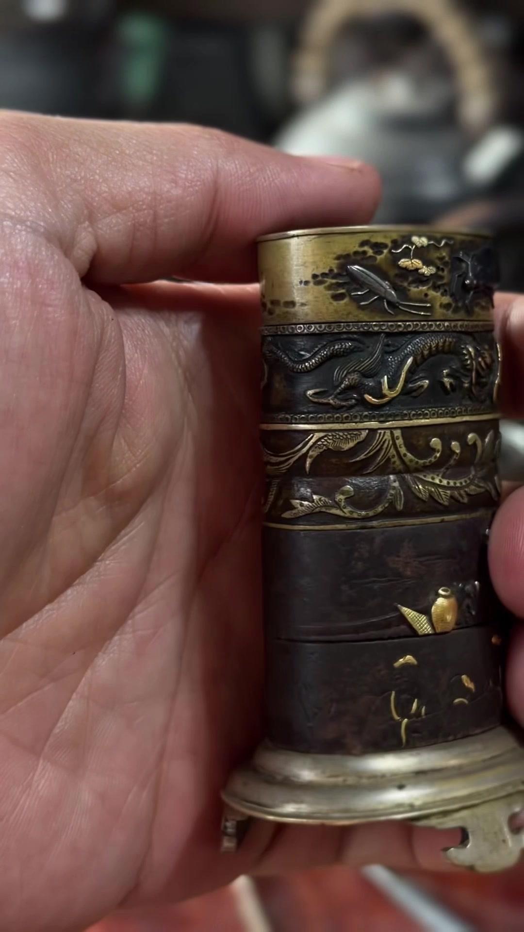 遇到喜欢的物件真的走不动道!💡古器新用太惊艳!江户时期的刀盘,日本顶级金工太绝了~刻雕、镶嵌,足足5种工艺都是顶配,每一处细节都透着精致。 放在家里当小置物架,瞬间提升氛围感,实用又有格调。