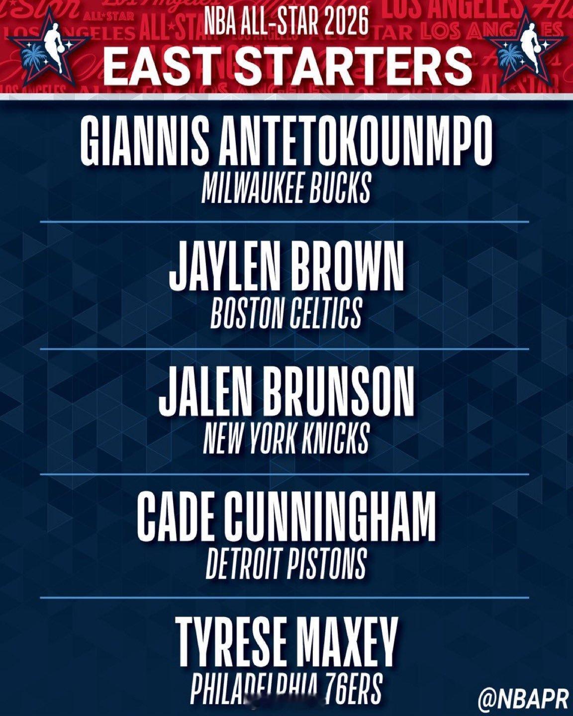 NBA全明星首发阵容公布,卢卡为票王。不过今年的比赛形式为美国队vs世界队,所以