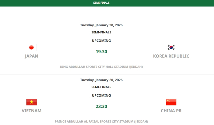 【#U23男足今日将战越南队#】#U23国足23时30分战越南队# 20日23时30分,U23亚洲杯半决赛,中国队将对战越南队。U23亚洲杯半决赛对阵:日本 vs 韩国,1月20日,19:30越南 vs 中国,1月20日,23:30 本届U23亚洲杯中,中国U23男足连续4场比赛未失球。小组赛阶段,中国队以1胜2平积5分的战绩位列D组第二,先后0∶0战平伊拉克队、1∶0击败澳大利亚队、0∶0逼平泰国队,以零失球的防守晋级淘汰赛。