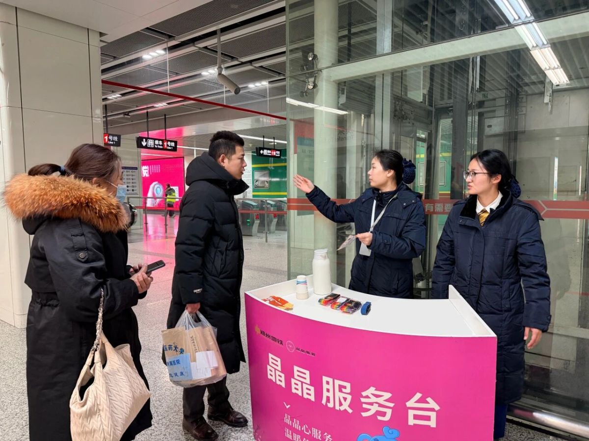 “小心地滑,慢慢走”“喝杯热水暖暖吧”,走进10号线郑州火车站中心站,晶晶服务台热水早已备好,电梯门把手上已套上毛绒手套,冬日暖意从指尖开始。遇到提着大件行李的乘客、步履蹒跚的长者、好奇张望的孩子,郑州地铁人都会快步向前、接过行李,帮扶、引路、解答,递上一份温暖和关心,所有的细心都藏在主动里。