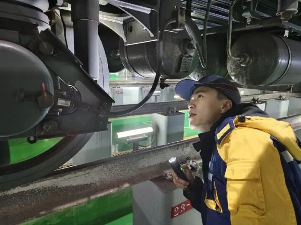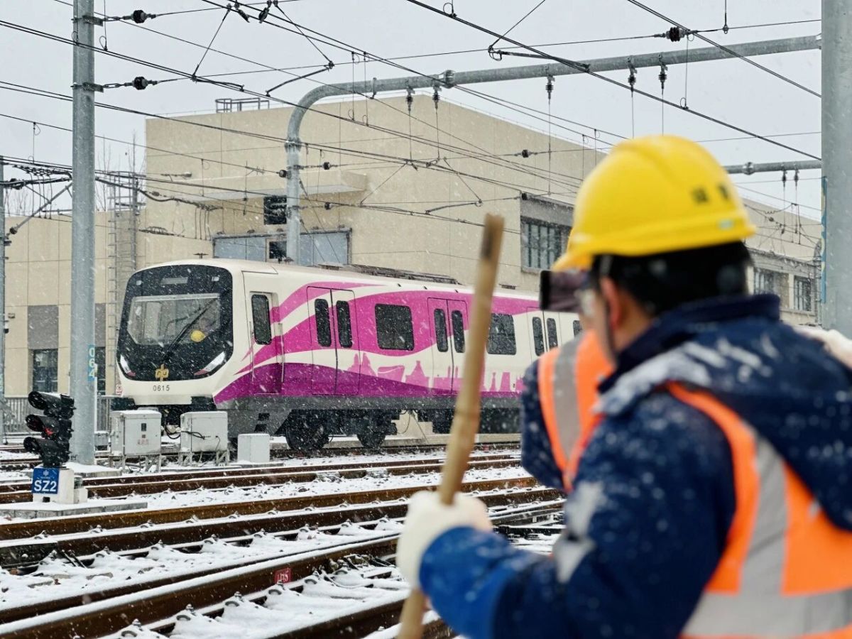 根据气象预报预警信息,提前在关键位置涂抹防冻液、清理积雪;加强巡视段场露天设备,为接触线涂抹防冻液;对电客车走行装置、客室空调、座椅电加热等加强检查;对防寒应急物资全面检查,确保每一件都状态完好。一夜未眠的守护,只为换取乘客朋友晨间出行的那份从容。