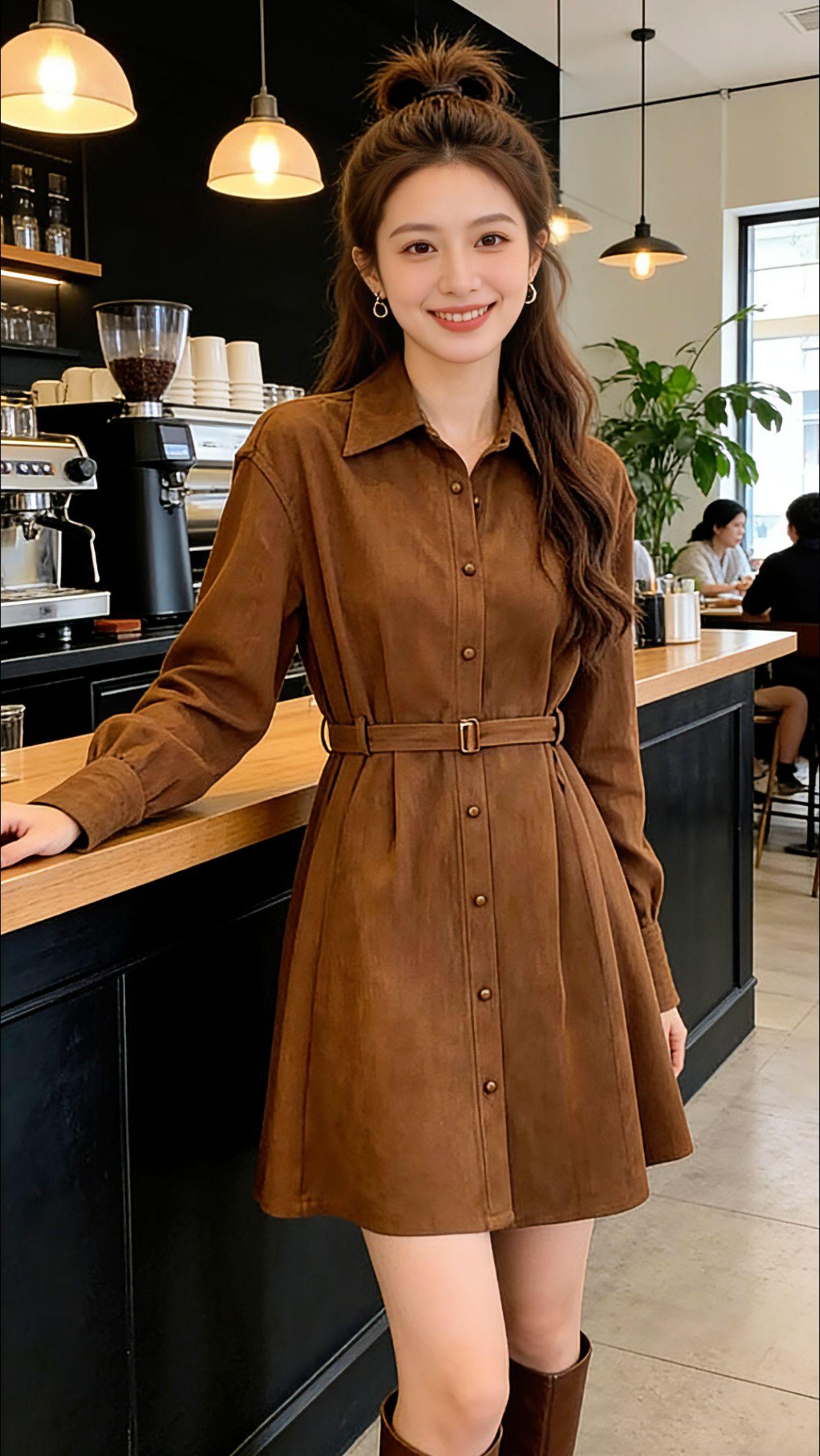 周末逛街时一眼被这件美拉德衬衫裙戳中,在店里试穿就舍不得脱。暖棕色调自带温柔滤镜,收腰设计悄悄藏住小肉肉,搭一双长靴走在街上,整个人都透着慵懒又精致的氛围感。 下午和闺蜜泡咖啡馆,随手拍的几张图被追着要链接。软乎乎的面料舒服又保暖,翻领+小排扣的细节太戳人,初冬出门不用费心搭配,一件就能搞定气质满满的出街造型。 时尚穿搭 过年穿什么 好看的衣服不分年龄 秋冬辣妹穿搭一周不重样
