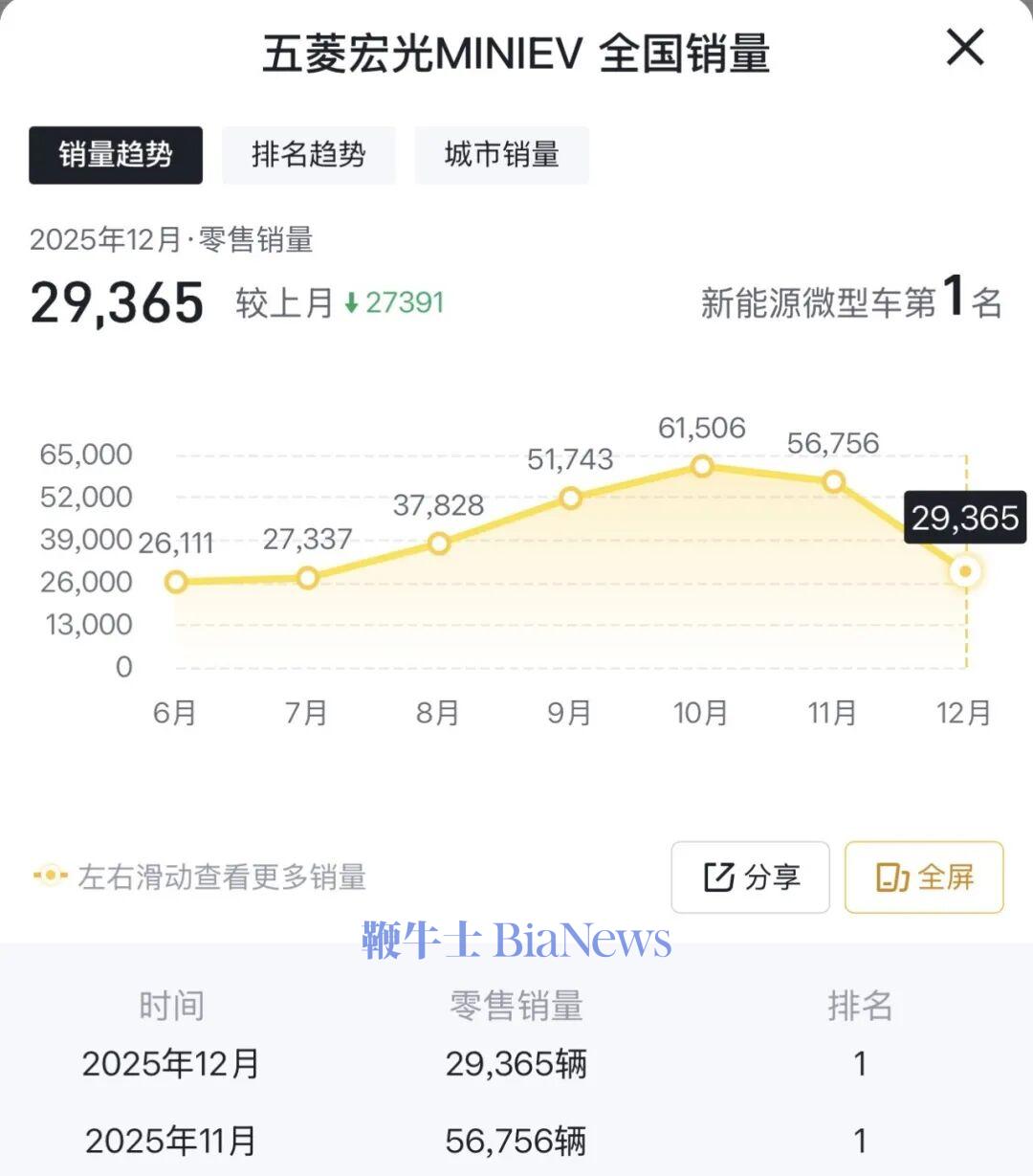 懂车帝数据显示,在包括燃油车、新能源车在内的全动力车型近半年的销量排行榜中,上汽旗下的五菱宏光MINIEV以26.45万辆的成绩排在第一,紧随其后的是吉利星愿26.08万辆。