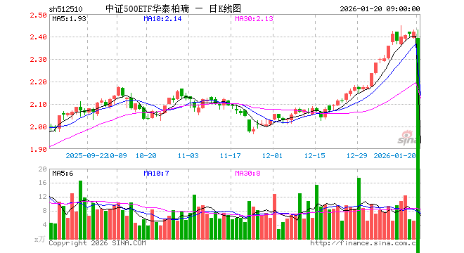 1月19日,中证500ETF华泰柏瑞(512510)涨0.37%,成交额1261.77万元。当日份额增加300.00万份,最新份额为4.27亿份,近20个交易日份额减少1200.00万份。最新资产净值计算值为10.34亿元。