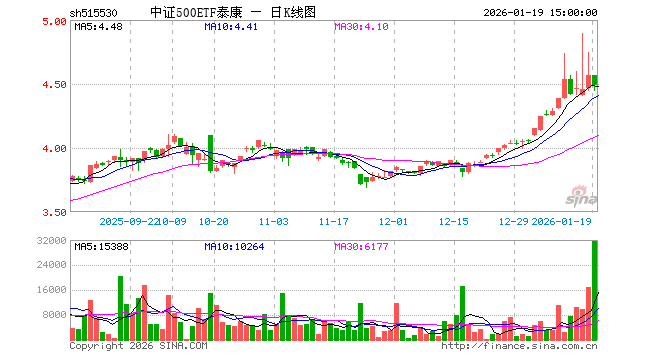 1月19日,中证500ETF泰康(515530)跌1.56%,成交额1433.13万元。当日份额减少80.00万份,最新份额为1464.27万份,近20个交易日份额减少80.00万份。最新资产净值计算值为6603.71万元。