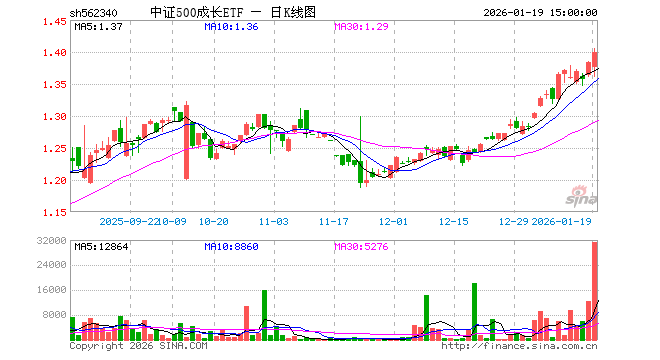 1月19日,中证500成长ETF(562340)涨1.08%,成交额438.23万元。当日份额增加100.00万份,最新份额为914.43万份,近20个交易日份额减少100.00万份。最新资产净值计算值为1263.29万元。