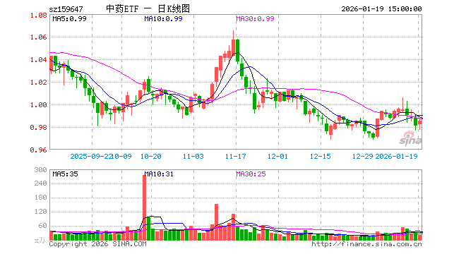 1月19日,中药ETF(159647)涨0.41%,成交额2030.61万元。当日份额增加250.00万份,最新份额为14.35亿份,近20个交易日份额增加300.00万份。最新资产净值计算值为14.12亿元。