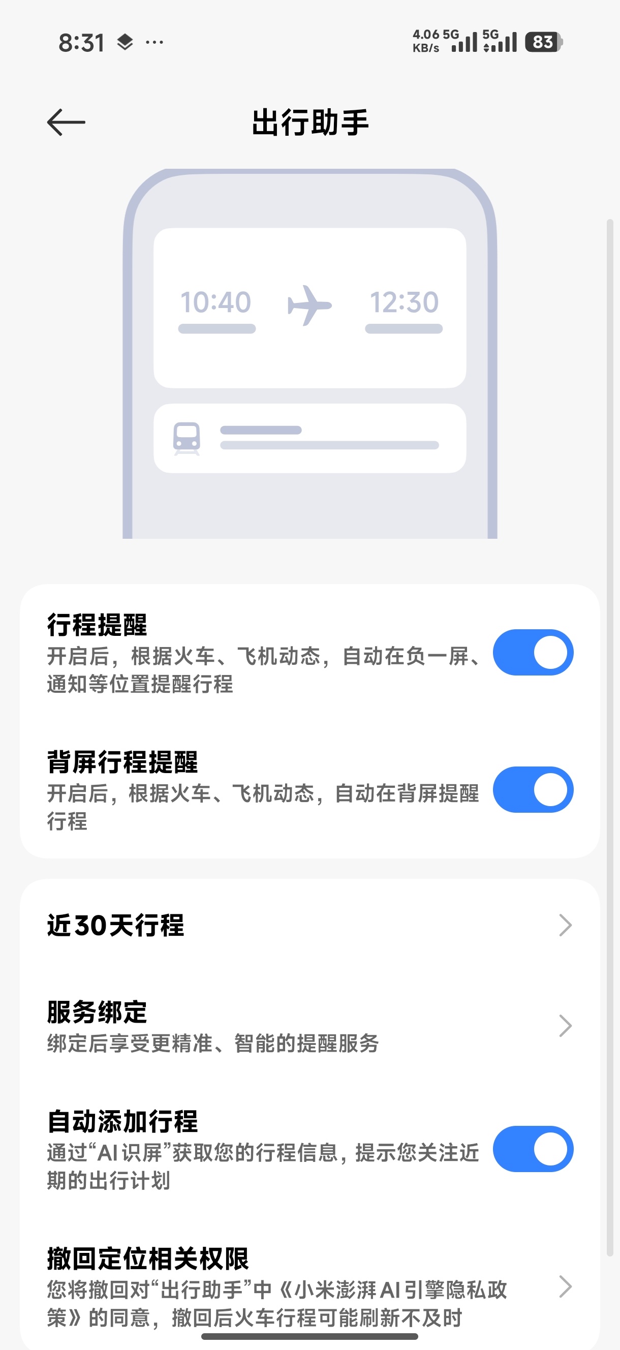 ……澎湃行程助手失效了?啥账号都绑定了,就是不跳出提醒,我甚至还取消绑定重新登录