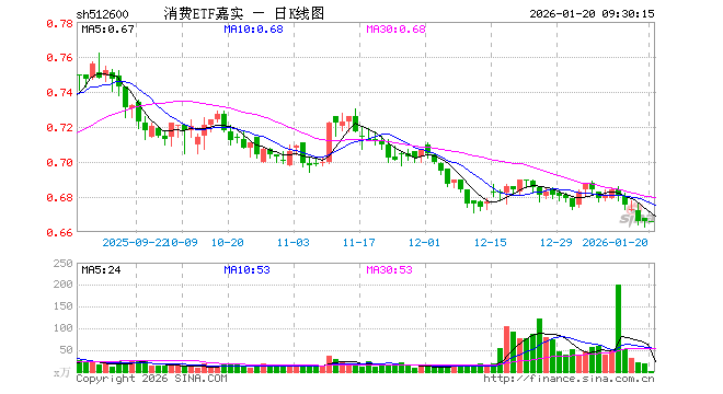 1月20日,消费ETF嘉实(512600)开盘涨0.00%,报0.666元。消费ETF嘉实(512600)重仓股方面,贵州茅台开盘涨0.25%,五粮液跌0.05%,牧原股份涨0.11%,伊利股份涨0.11%,温氏股份涨0.00%,泸州老窖跌0.17%,山西汾酒涨0.02%,海天味业涨0.05%,东鹏饮料涨0.12%,海大集团跌0.13%。