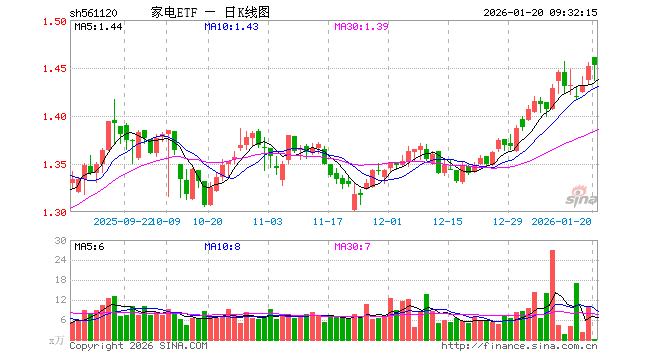 家电ETF(561120)业绩比较基准为中证全指家用电器指数收益率,管理人为富国基金管理有限公司,基金经理为牛志冬,成立(2022-01-25)以来回报为45.16%,近一个月回报为7.64%。