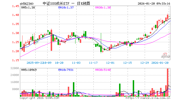 1月20日,中证500成长ETF(562340)开盘跌0.50%,报1.392元。中证500成长ETF(562340)重仓股方面,华工科技开盘涨0.10%,恺英网络涨0.68%,东吴证券涨0.00%,恒玄科技跌0.08%,科达利涨0.09%,水晶光电涨0.19%,天山铝业涨0.11%,春风动力涨0.00%,杰瑞股份跌1.00%,顺络电子跌0.03%。