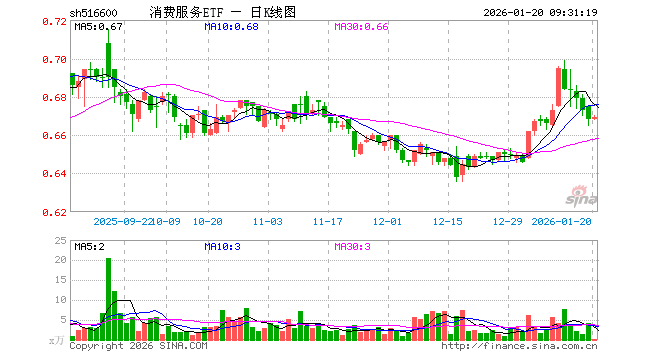 1月20日,消费服务ETF(516600)开盘涨0.00%,报0.668元。消费服务ETF(516600)重仓股方面,恒瑞医药开盘涨0.02%,药明康德跌0.50%,寒武纪跌0.19%,贵州茅台涨0.25%,五粮液跌0.05%,中国平安涨0.08%,科大讯飞涨0.74%,招商银行涨0.05%,伊利股份涨0.11%,中国电信涨0.17%。