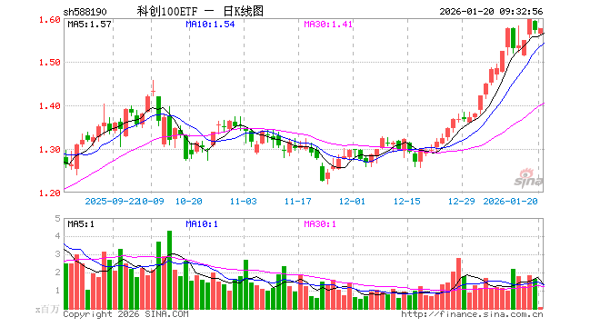 科创100ETF(588190)开盘跌0.51%,重仓股华虹公司跌0.06%,百济神州涨0.00%