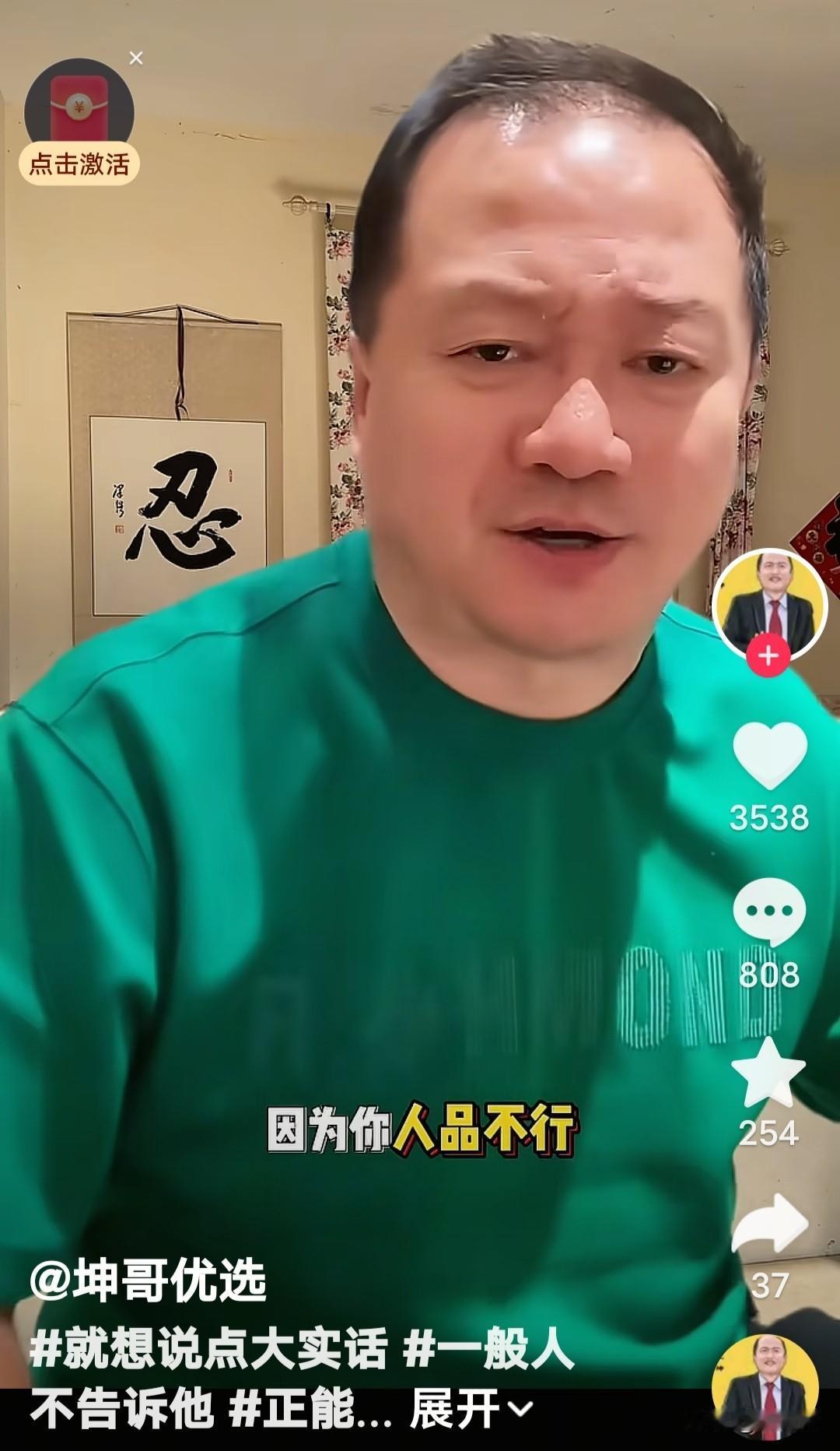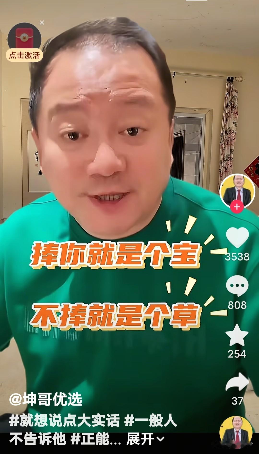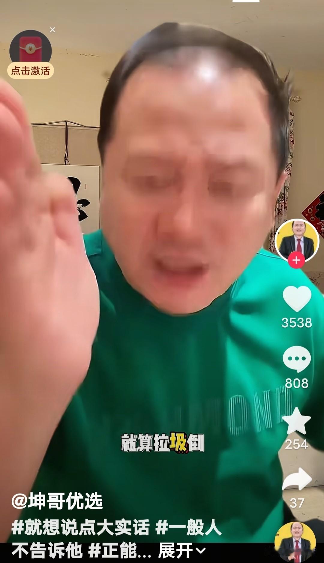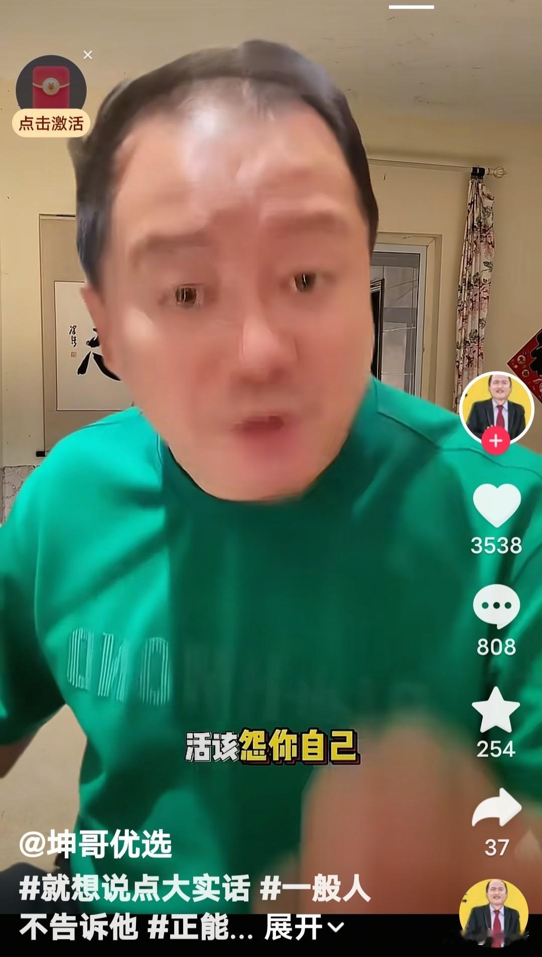 “活该!怨你自己……”“谢广坤”咬牙切齿说谁呢?咋听着好像是说“酸黄瓜”的那个人呢。 “谢广坤”发视频上说,“你啥都不是了吧?你太能装了,因为你的人品不行……” 他说“记住,你再疯、再癫、再狂……,你下去了吧,下去就上不来了。(违反社区规范,踩踏政策红线)活该,要怨就怨你自己!”你“就算是垃圾倒。 “捧你就是个宝,不捧你就是个草!”“谢广坤”这话说的没毛病吧? 话糙理不糙。作为一个演员,观众(听众)就是衣食父母,说普通观众是“酸黄瓜”,那是看不起父母,太飘了,忘本了,活该遭到唾弃。 谢广坤人生感悟