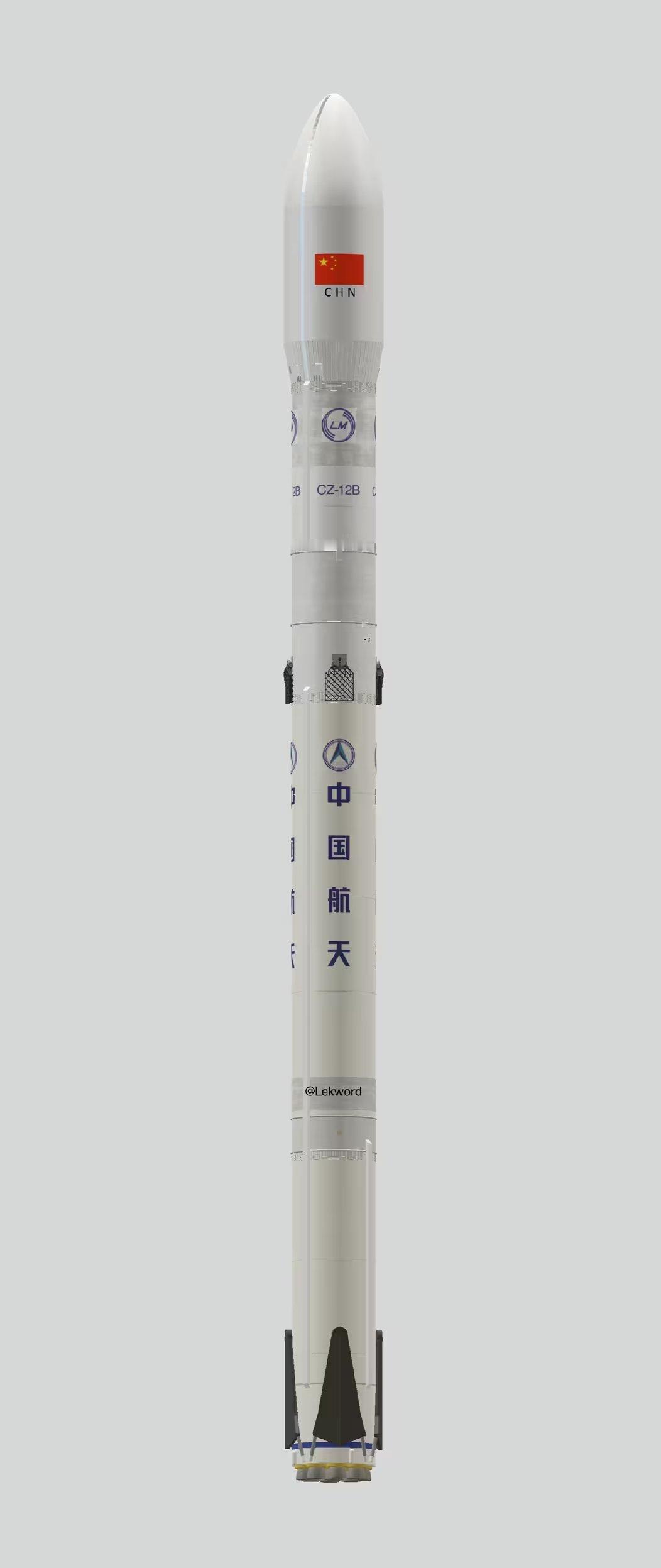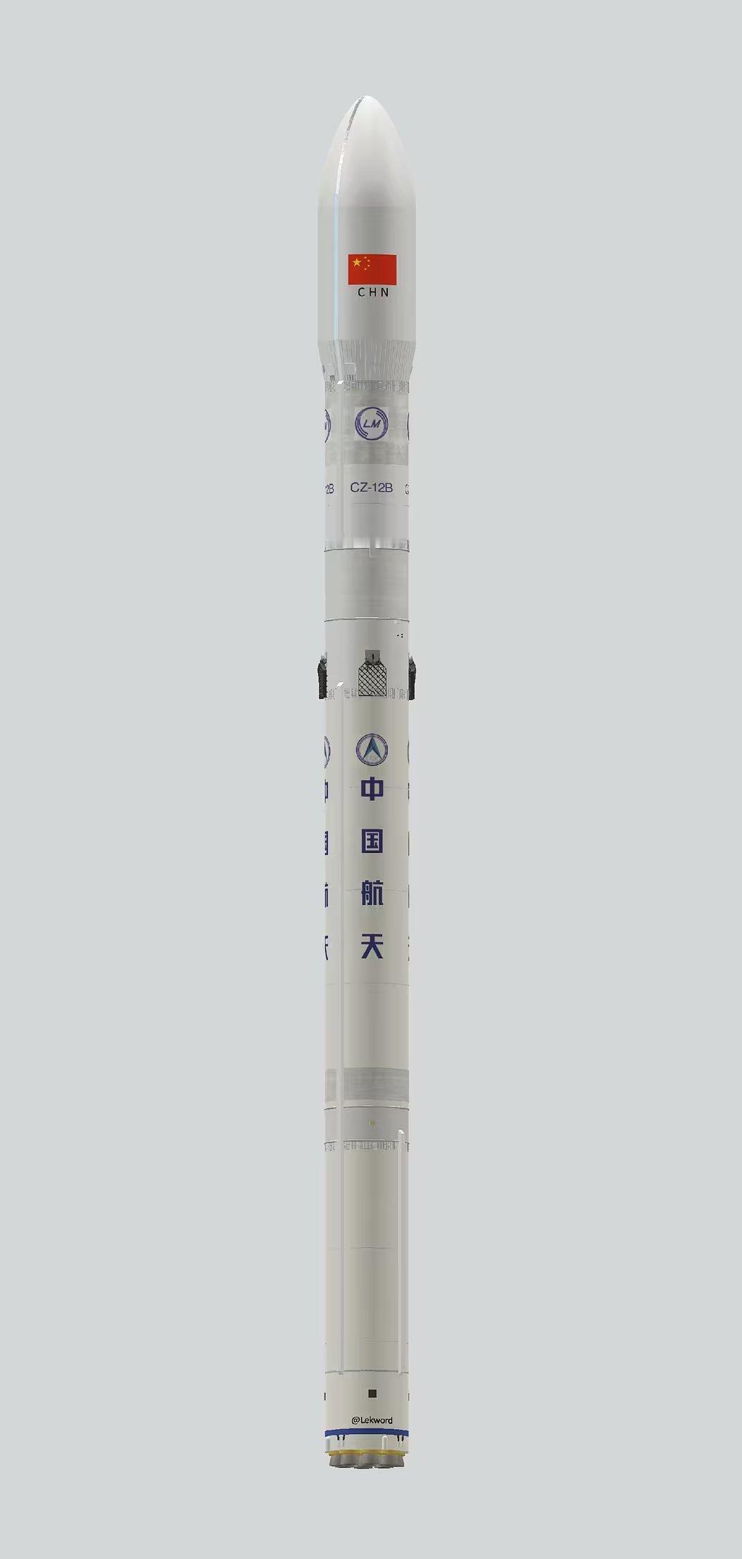 长征十二号乙运载火箭渲染图,一次性和复用版,图1为一次性即首发版。图源:Lekw
