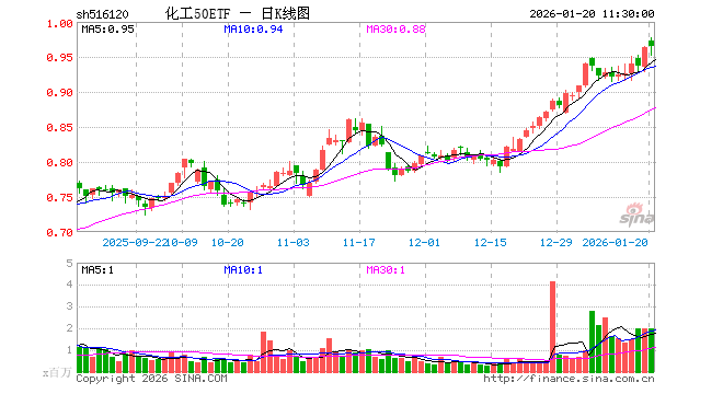 化工50ETF(516120)业绩比较基准为中证细分化工产业主题指数收益率,管理人为富国基金管理有限公司,基金经理为殷钦怡,成立(2021-03-01)以来回报为-3.73%,近一个月回报为15.75%。
