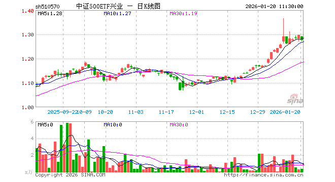 1月20日,截止午间收盘,中证500ETF兴业(510570)跌1.47%,报1.277元,成交额44.00万元。中证500ETF兴业(510570)重仓股方面,胜宏科技截止午盘跌4.94%,华工科技跌3.97%,瑞芯微涨0.46%,芯原股份跌1.53%,协创数据跌1.38%,百济神州跌2.37%,科达利跌2.46%,指南针跌1.64%,巨人网络涨2.34%,恒玄科技跌0.70%。