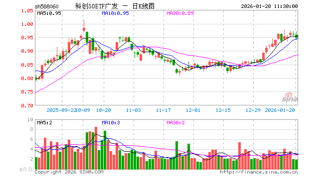 1月20日,截止午间收盘,科创50ETF广发(588060)跌1.25%,报0.947元,成交额1.78亿元。科创50ETF广发(588060)重仓股方面,海光信息截止午盘涨1.14%,中芯国际跌2.12%,寒武纪跌3.93%,澜起科技涨4.79%,中微公司跌3.39%,联影医疗跌1.90%,金山办公跌2.14%,芯原股份跌1.53%,石头科技跌1.40%,传音控股跌3.35%。