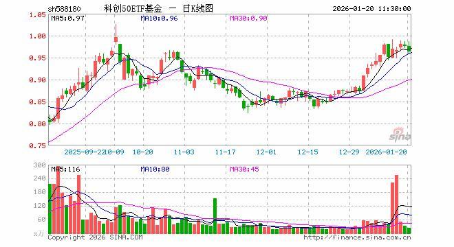 1月20日,截止午间收盘,科创50ETF基金(588180)跌1.13%,报0.964元,成交额2136.63万元。科创50ETF基金(588180)重仓股方面,中芯国际截止午盘跌2.12%,海光信息涨1.14%,寒武纪跌3.93%,澜起科技涨4.79%,中微公司跌3.39%,联影医疗跌1.90%,金山办公跌2.14%,芯原股份跌1.53%,石头科技跌1.40%,传音控股跌3.35%。