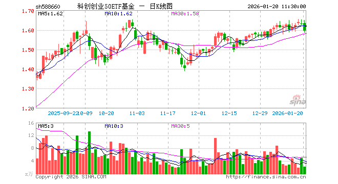 1月20日,截止午间收盘,科创创业50ETF基金(588660)跌2.03%,报1.595元,成交额351.81万元。科创创业50ETF基金(588660)重仓股方面,宁德时代截止午盘涨0.97%,新易盛跌6.12%,中际旭创跌3.92%,寒武纪跌3.93%,中芯国际跌2.12%,阳光电源跌5.79%,海光信息涨1.14%,澜起科技涨4.79%,胜宏科技跌4.94%,汇川技术跌0.83%。