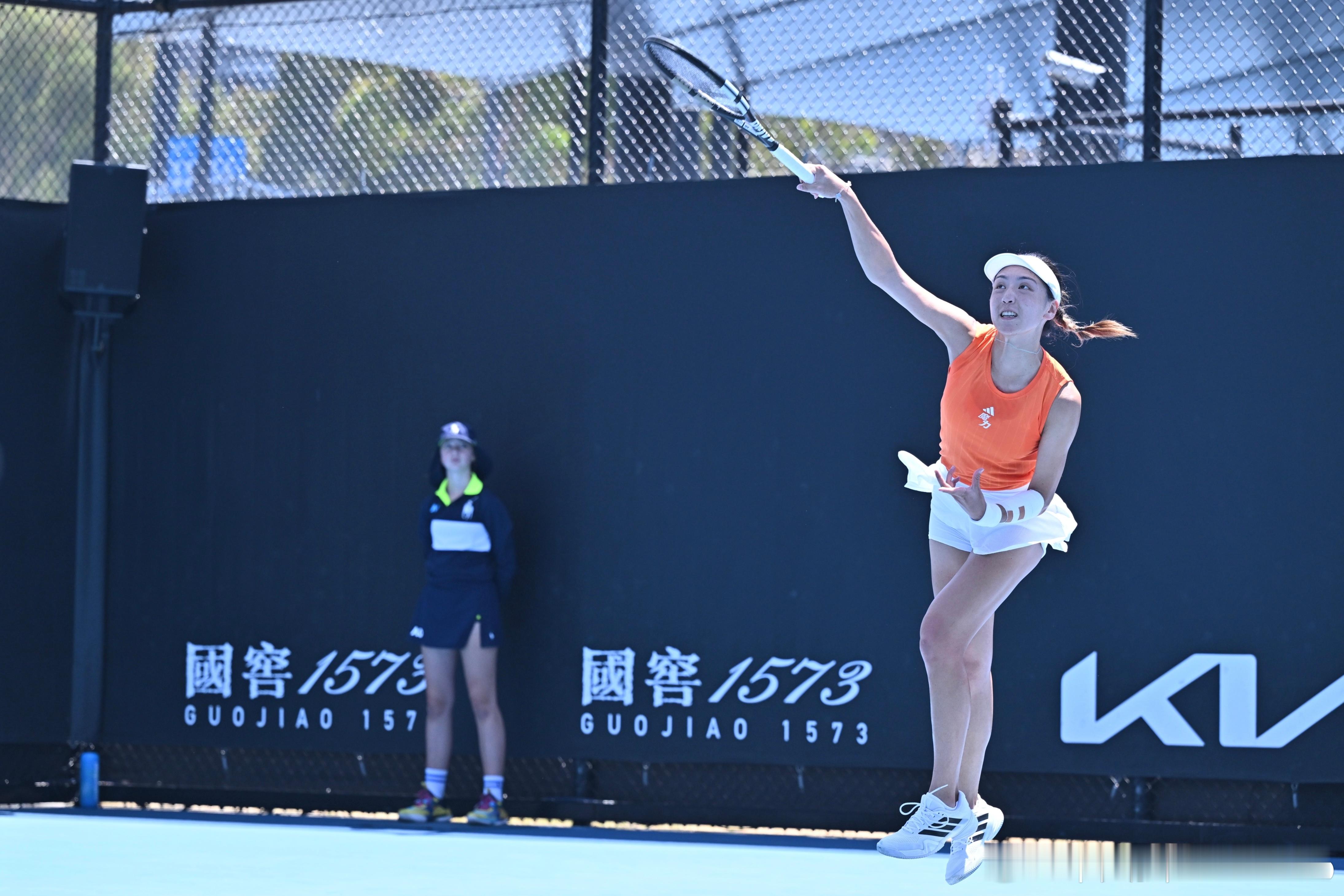 王欣瑜晋级澳网女单次轮王欣瑜澳网开门红王欣瑜!!!6-3/6-3!击败了卡丽妮娜两盘球分别在2-3和1-3之后连续下分,最终一波流带走!!!今天关键分基本上都是Gina拿下的,正手进攻打出来了,发球环节也很好啊,ACE数量上双了加油加油Gina!!!