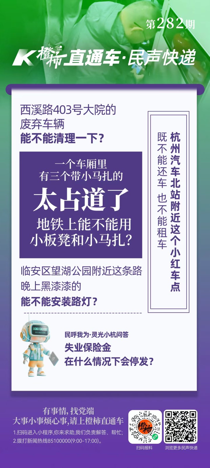 地铁工作人员在巡查车厢的过程中,也会对使用小板凳和小马扎的行为持续关注并加强劝导,以排除可能存在的安全隐患,“我们希望广大乘客与我们一起维护安全、文明的乘车环境,如在乘车过程中发现使用小板凳和小马扎影响乘车安全的情况,可以联系现场工作人员或拨打0571-96600客服热线向我们反映,我们会及时进行处置”。