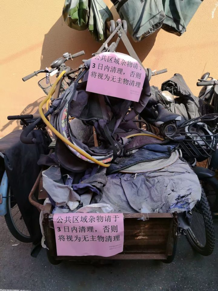 西湖区庆丰社区回复:橙友的建议已收悉。物业在上周五已经张贴了相关告示,要求公共区域杂物于3日内清理,否则将视为无主物清理。还没有人认领的杂物,到时物业会清理到集中堆放自行车的地方。