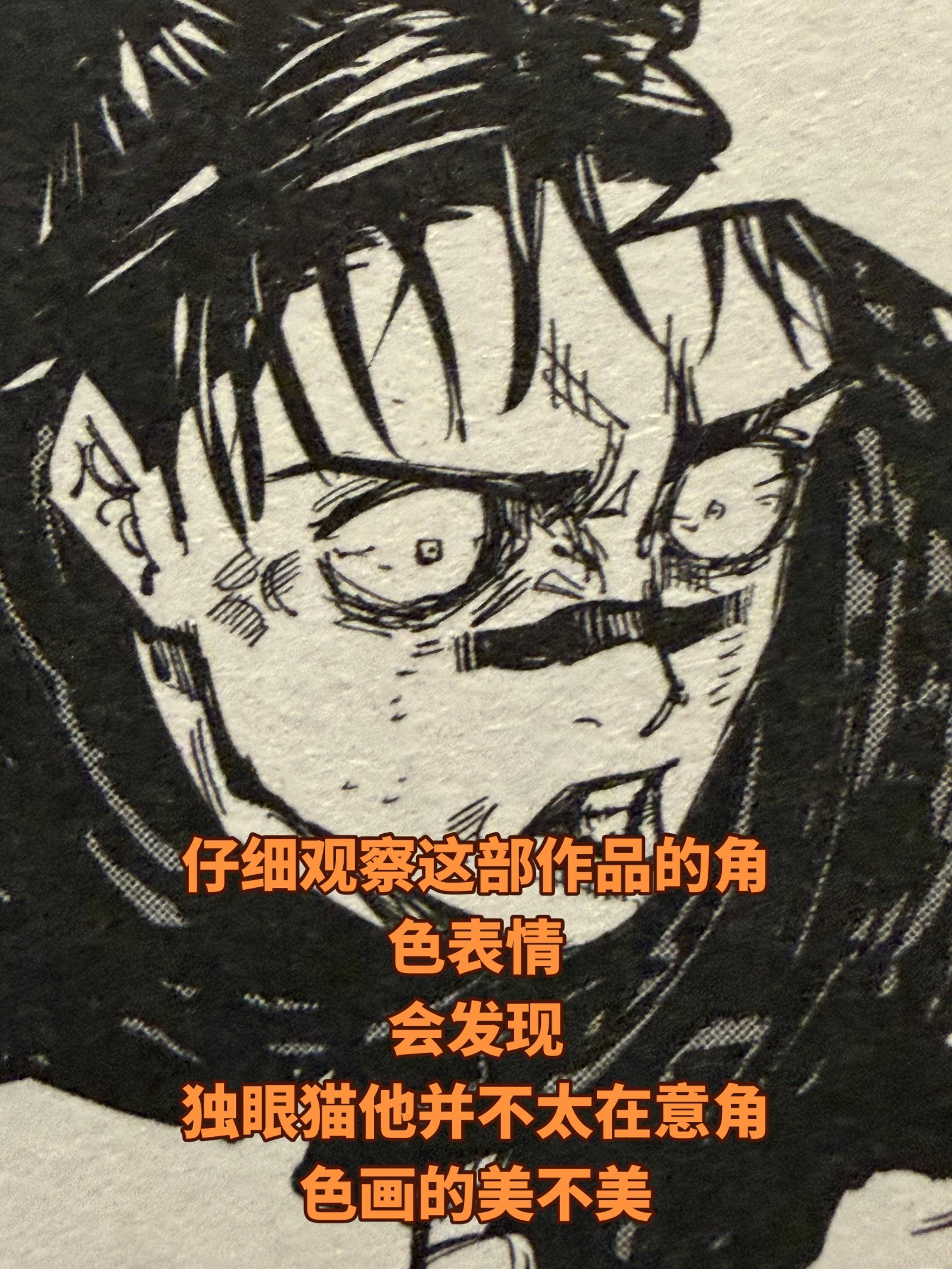 《咒术回战》中的角色表情刻画。对于漫画而言分镜和故事最重要,但是能吸引人去看一部作品的或许是画风,我当时看这部作品就是被他画的表情所吸引,他的台词和表情总能给我很强烈的代入感。我最近看了不少帖子,我发现国内的一些从业者对这部漫画的评价很负面,我也看了海外板块一些从业者对这部作品的评价,他们大多认为这部作品剧情推动上有些僵硬甚至不符合常识,但是对独眼猫独具一格的创造力都是持好评,特别是在画面表达和一些分镜上的创新。也就是说就算是专业人士对这部作品的看法也有分歧……就像御所园翔太就主动申请加入这部作品的动画化。