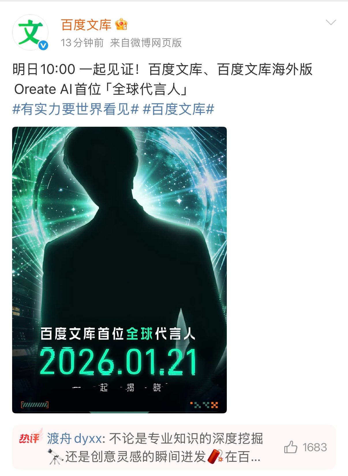 丁禹兮有点牛🐮2026年开年才20天,小丁新增4个商务了吧,有两个都是全球首位代言人,今天百度文库预热了
