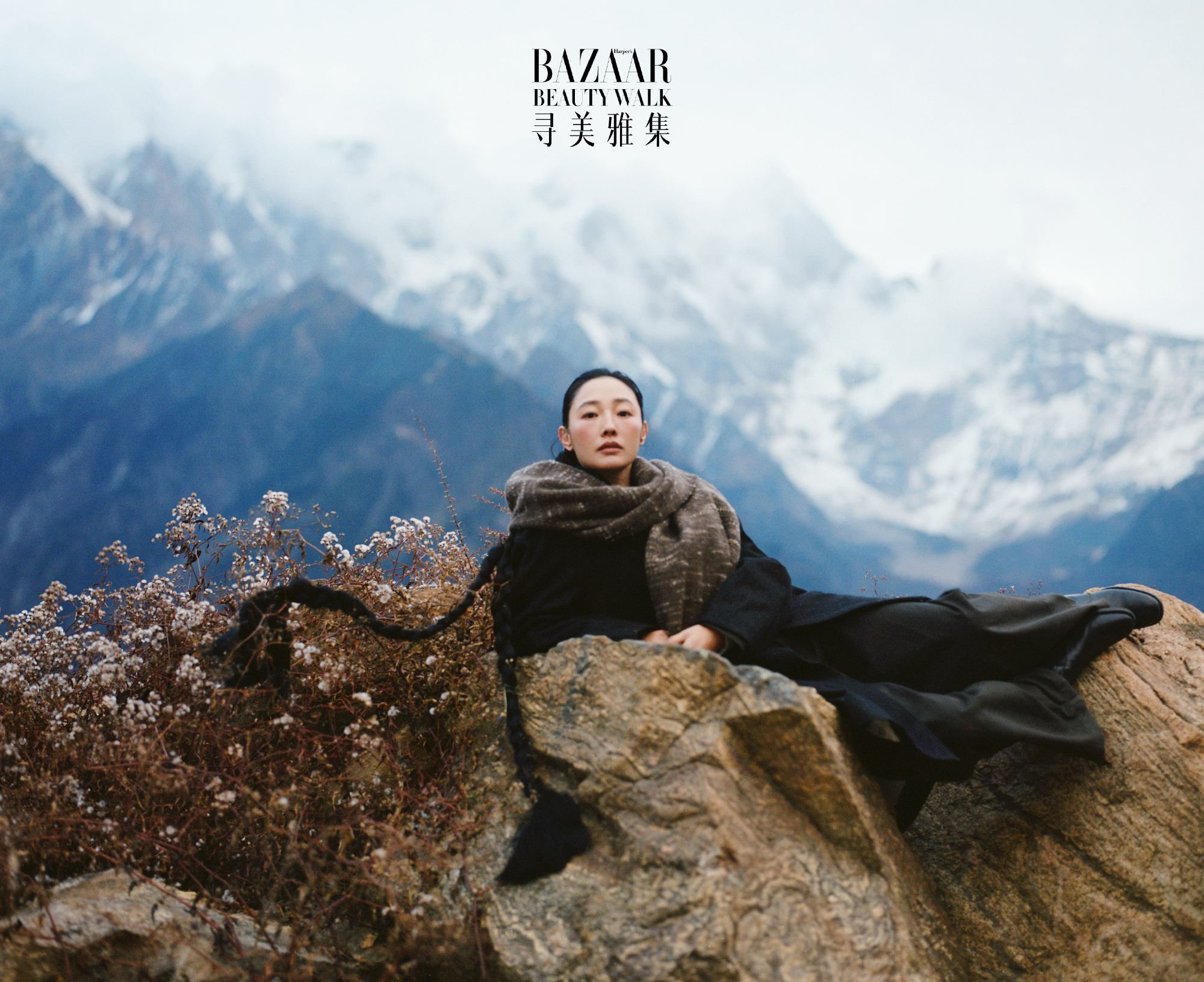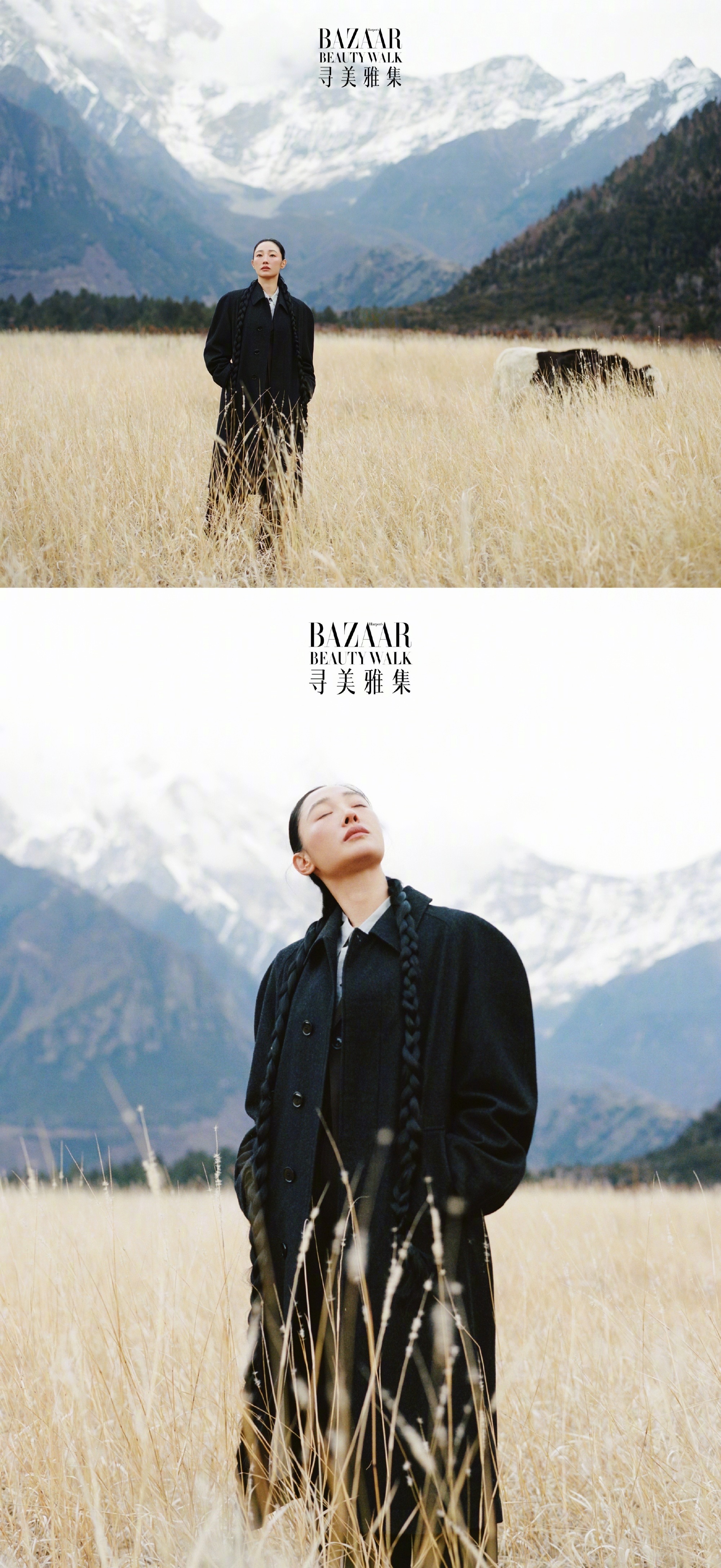 白百何身上的疗愈感 看到这一组大片的时候,真的能够感受到白百何身上的疗愈感,仿佛回归了藏族大山的一种生态之美。和高原雪山融为了一体