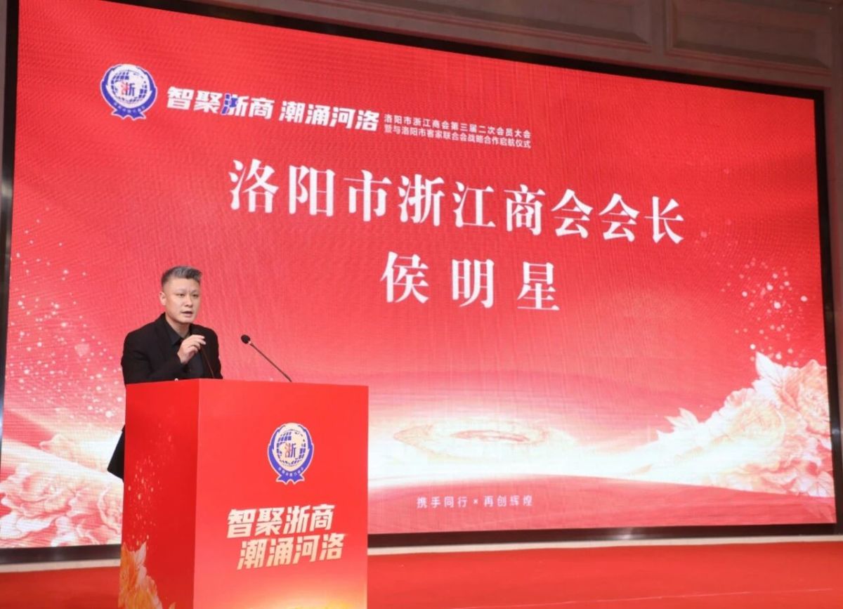 大会之上,洛阳市浙江商会会长侯明星讲话,深情回顾2025年商会扎根河洛、笃行创新的奋斗历程:“回望2025,是我们扎根河洛、笃行不怠的一年,是凝心聚力、守正创新的一年,更是情系乡梓、勇担使命的一年。我们始终以乡情为根、以责任为魂、以实干为本,将钱塘江的敢闯敢试融入河洛大地的沉稳厚重,把浙商人的初心坚守写进扎根洛阳的奋斗答卷。”他系统复盘了2025年五大核心创新实绩,正是这些温暖而坚定的突破性实践,为商会发展注入了澎湃动能:建领航强根基:构建“党建+服务+创新”三位一体治理体系,推动商会从“乡情纽带”向“发展引擎”深度转变,规范化、精细化建设迈上新高度,成为会员企业信赖的坚强后盾与创新发展的核心平台;强基固本聚合力:壮大商会队伍、吸纳新鲜血液,重点培育二代浙商——这群怀揣梦想、手握新知、深谙科技创新的新生代力量勇挑大梁、崭露头角,为商会发展注入了蓬勃生机,让浙商精神在传承中焕发新的时代光芒;科技赋能敢为先:以“敢为人先”的浙商精神为引领,以商会为龙头,带领全体同仁向高科技领域勇毅迈进,主动呼应国家科技创新战略,率先成为洛阳商协会科技赋能的先行者、引领者与示范者;经贸协作架桥梁:以文为媒、以情为桥,深化洛浙联动,与洛阳市客家联合会开展“浙客乡情·茶话会”“河洛钱塘·文脉分享会”等系列活动,在文旅、商贸、文创等领域开展务实合作,推动更多浙商优质企业扎根洛阳、深耕洛阳,与河洛大地同呼吸、共命运、齐发展;宣传聚力树形象:注重商会品牌塑造与先进事迹宣传,全方位、多角度展现商会发展成效与浙商担当风采,让“四千精神”在中原大地广为传颂,以实际行动诠释浙商“致富思源,富而思进;义利兼顾,以义为先”的家国情怀与时代担当。