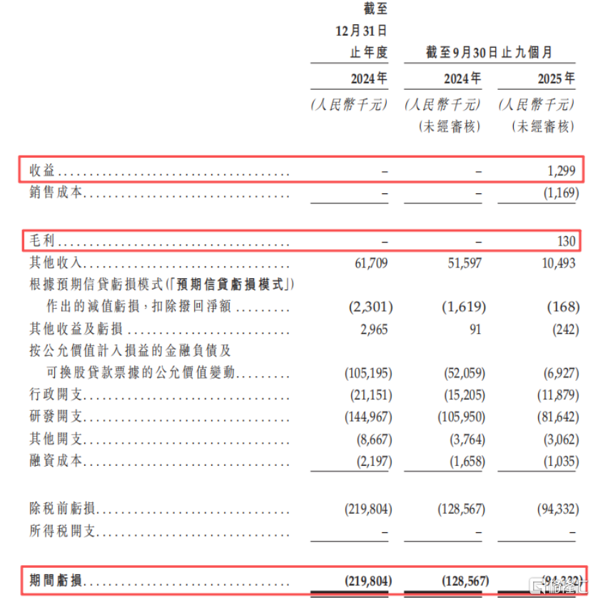 2024年及2025年1-9月(报告期),公司分别录得亏损2.2亿元、9433万元,研发开支分别为1.45亿元、8164.2万元,经营活动所用现金净额分别为6757.2万元、6275.3万元。