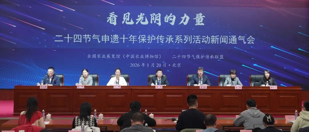 2026年1月20日上午,“看见光阴的力量:二十四节气申遗十年保护传承系列活动新闻通气会”在中国农业博物馆召开。