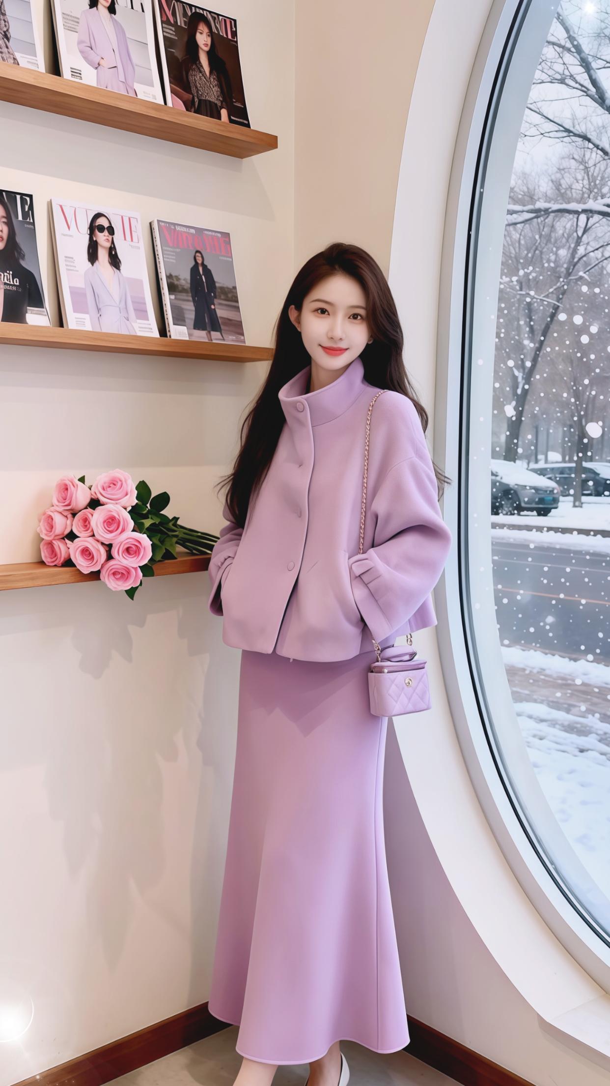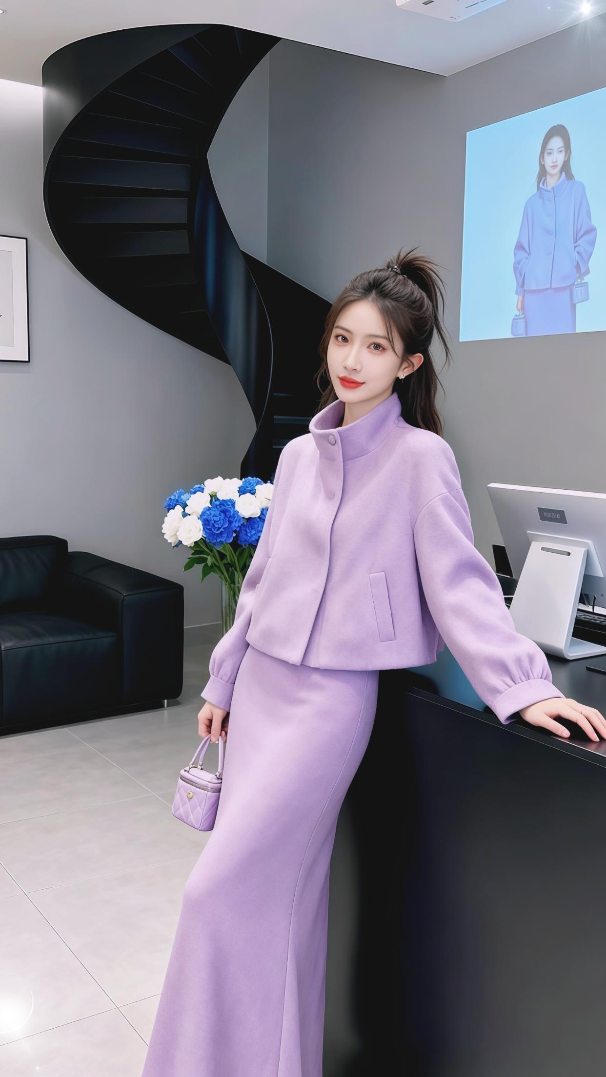穿搭 女装 时尚 套装两件套 紫色