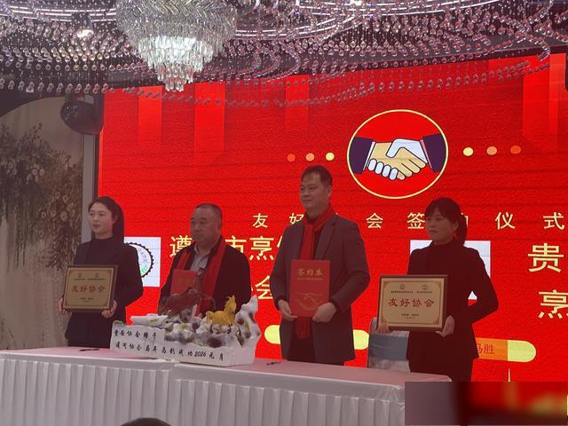 年会期间,还举行了遵义市烹饪饭店行业协会与贵州省贵安新区饭店烹饪协会友好协会签约仪式,旨在深化行业合作,共促资源共享。此外,遵义市烹饪饭店行业协会为新增会员单位、理事单位、副会长单位等授牌、颁发聘书,为协会注入了新的活力。