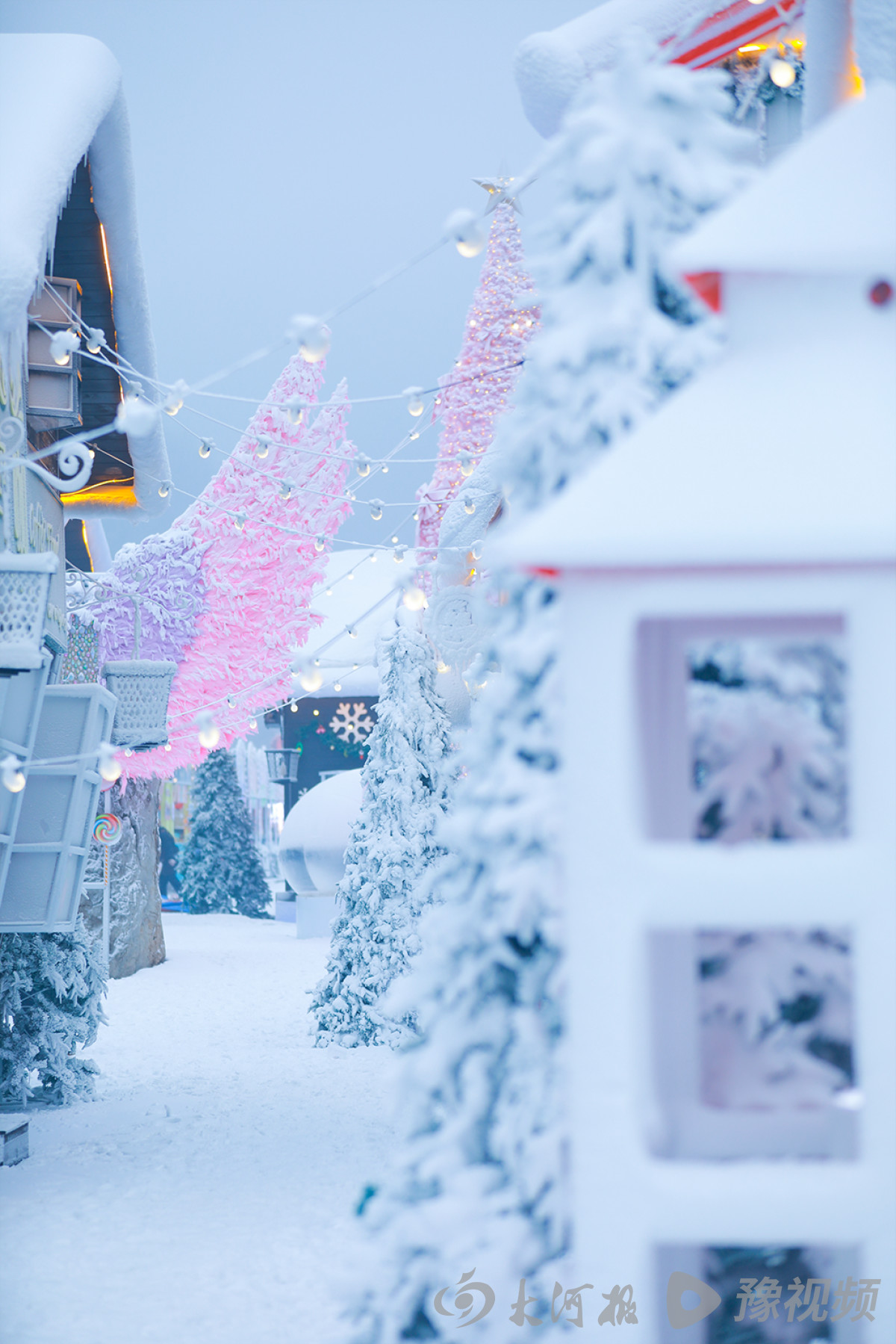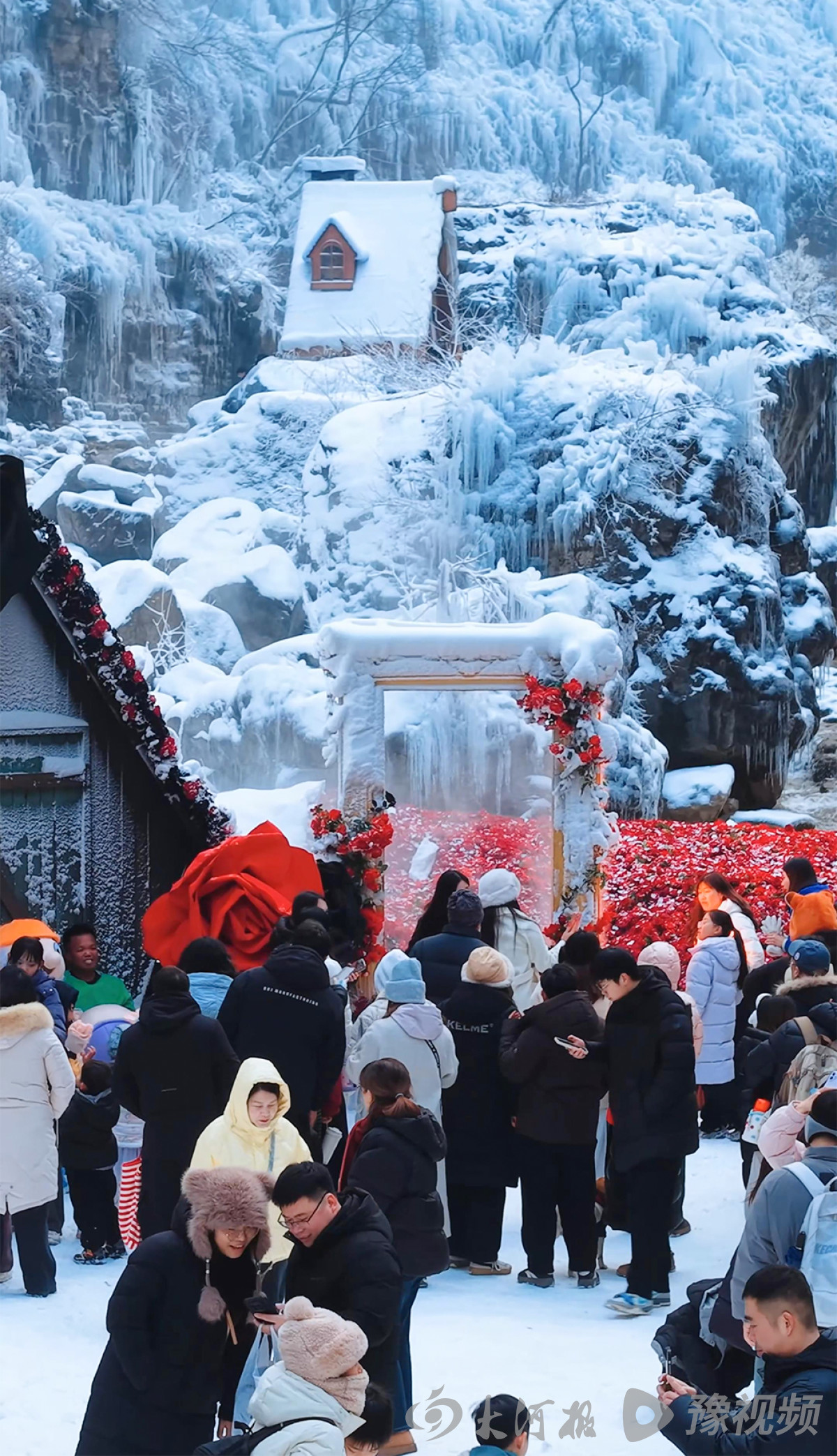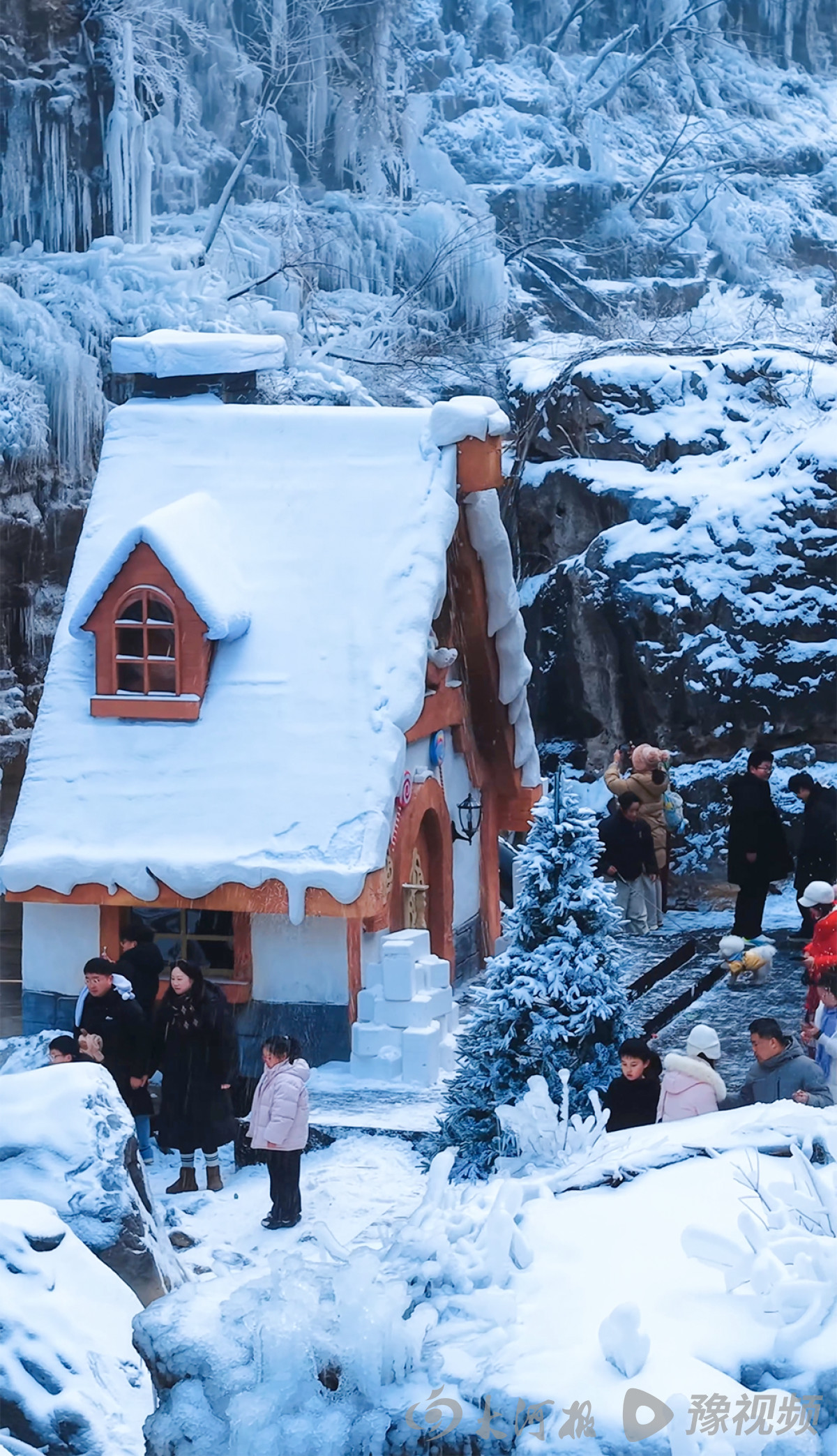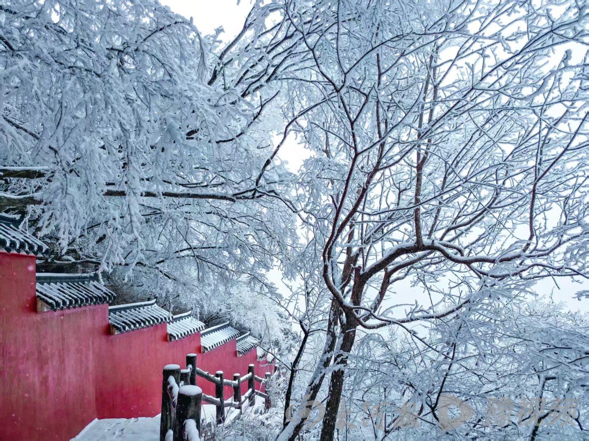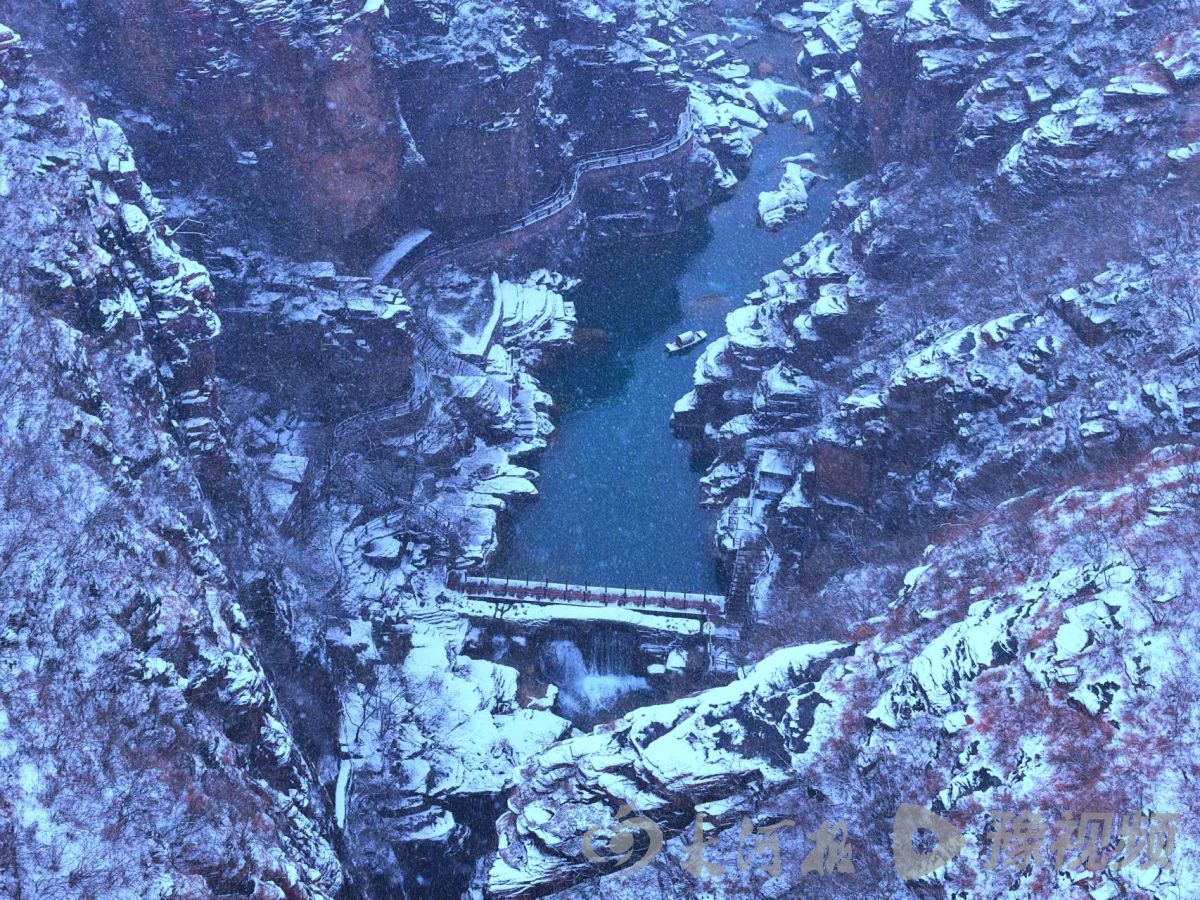 雪花纷纷扬扬洒落云台山间,从红石峡的红岩峭壁到泉瀑峡的幽深谷涧,从茱萸峰的云端之巅到魔法童话小镇的木屋群落,都被白雪温柔包裹,化作银装素裹的冰雪秘境。
