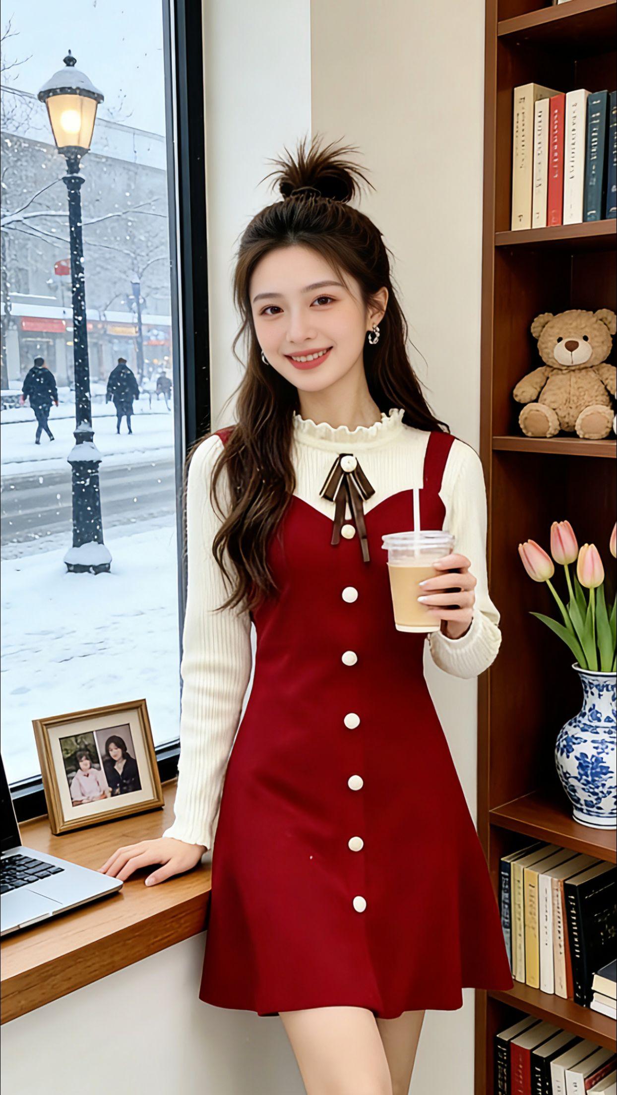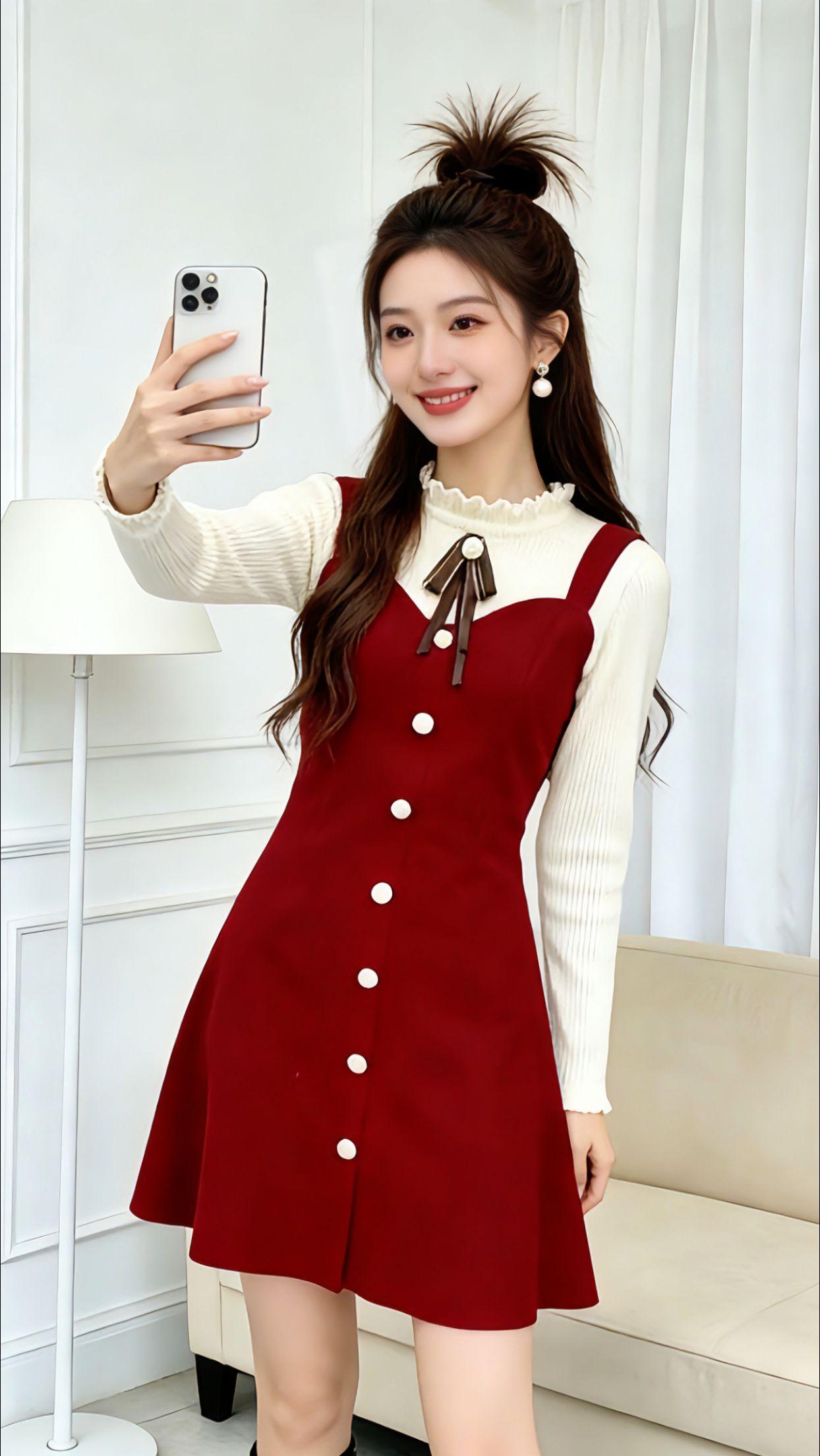 Danny周末和闺蜜逛小店,一眼就被这件假两件针织裙戳中!红白撞色像冬日里的热红酒,木耳边领口+蝴蝶结细节超温柔,针织面料软糯亲肤,穿上身直接减龄五岁,对着镜子转圈圈时,连店主都夸我像韩剧女主。 配长靴是甜酷少女,搭大衣是温柔学姐,约会通勤都能打。现在降温刚好穿,软乎乎的包裹感太治愈啦,衣柜里必须有一件这样的氛围感战袍! 过年穿什么 过年我就这样穿 新年穿搭 假两件连衣裙