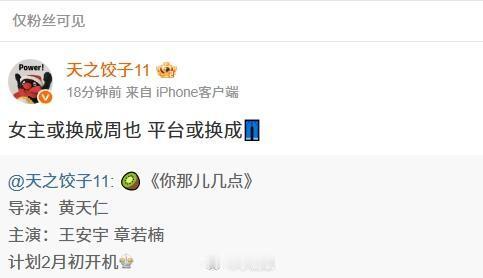 《你那儿几点》女主和平台可能要换《你那儿几点》女主可能要换成周也 平台或换成优酷 导演:黄天仁(想见你、在暴雪时分)编剧:郝茹(炽道、私藏浪漫)2月初上海开机,拍摄周期110天。简介:根据小说《想把你和时间藏起来》改编。 五年前,充满生命力的沈千盏意外闯入了钟表修复师季清和的生命中。季清和因此对她一见钟情,念念不忘。五年后,外表光鲜亮丽、实则生活窘迫的女制片人沈千盏因为一部《时间》小说版权与季清和再次命运重逢。为了苦心经营的事业,沈千盏不得已寻求与季清和的合作,而嘴上说着拒绝、内心却渴望 再续前缘的季清和则步步为营,精准拿捏甲方身份,套路布局,一步步勾着沈千盏掉进自己的狐狸洞。两人在彼此靠近的过程中,成年人的面具被层层揭开,一场关于时间和治愈的爱情故事缓缓开启。你那儿几点