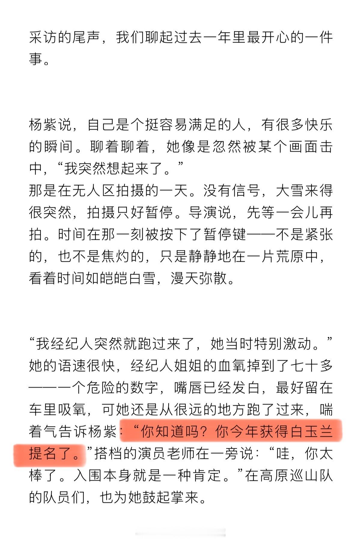 好喜欢听杨紫聊作品和角色。杨紫拍生命树高反持续188天杨紫去年最开心的事是白玉兰