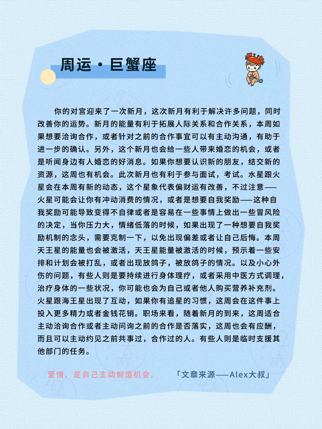 我们在结合现实情况的同时会有自己的想法和决定,但因为太阳进入新的位置,这个新位置代表着多元立场和观念,势必会跟自己有立场不同,观念不同,想法不同的人跟自己成为对立面,那么这个时候务必减少土元素(新月能量)带来的固执和强势,虽然对方跟自己是对立面,但也许对方的部分想法是对自己有利的,因此有助于我们调整自己的策略和决定——处理生活,工作,人际或者其他决策的话,如果出现这种对立碰撞的时刻,建议先保持冷静,不要因为出现唱反调的人而焦躁爆发,而是从中吸取“我可以学到什么”的经验,以此来完善自己的决定和想法。