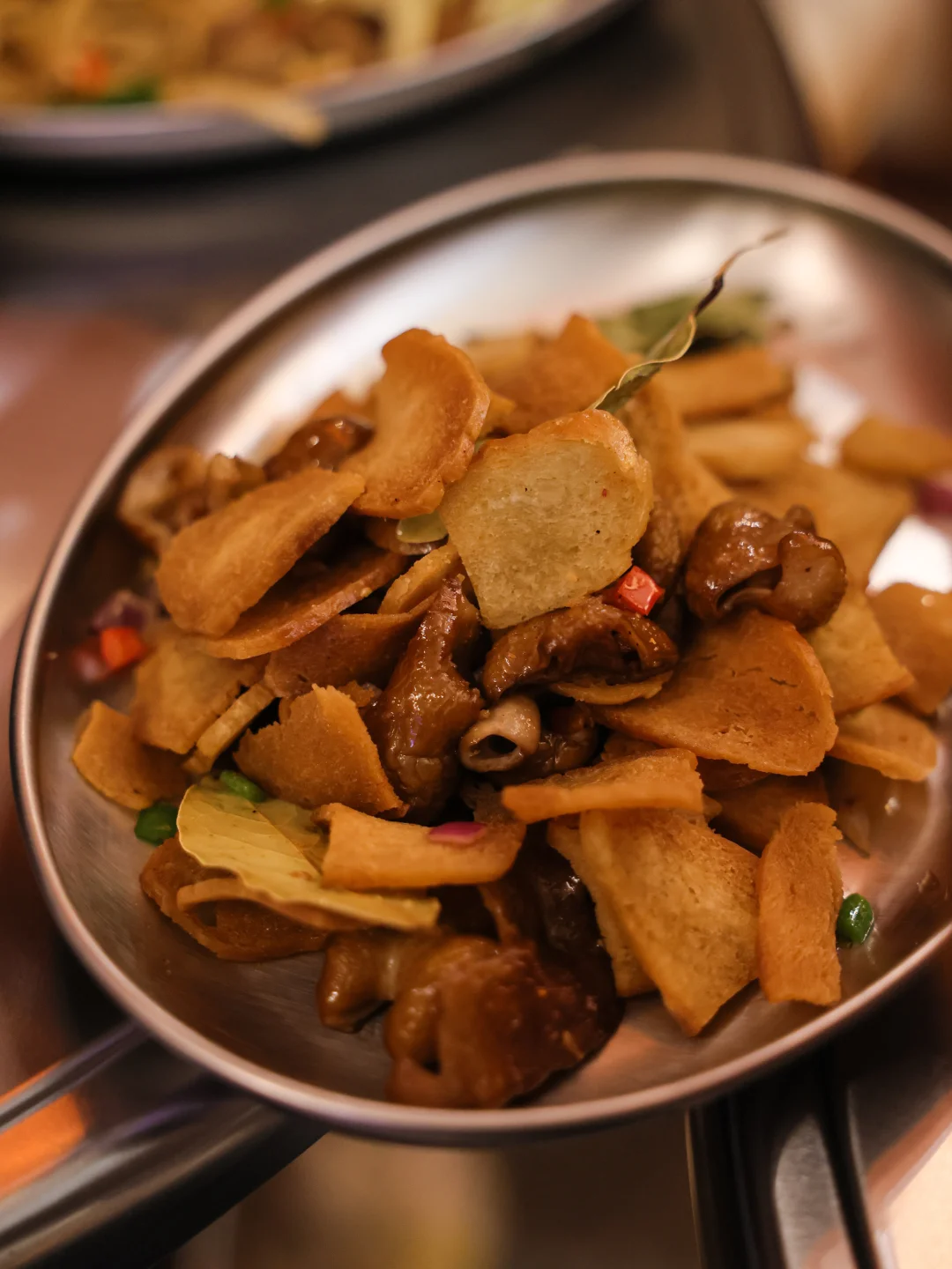 还很喜欢加了芋头丝的东山小管和搭配了类似泡馍片炒的肥肠,都是那种好像没吃过、但又觉得很合理的排挡菜🤣