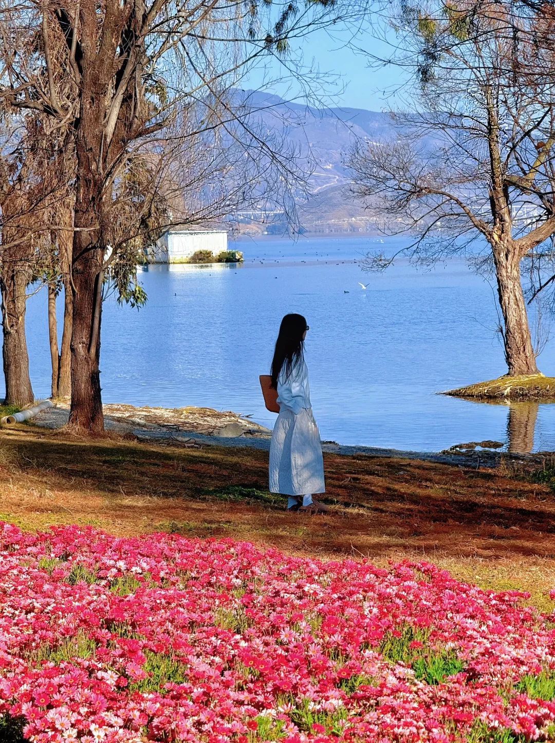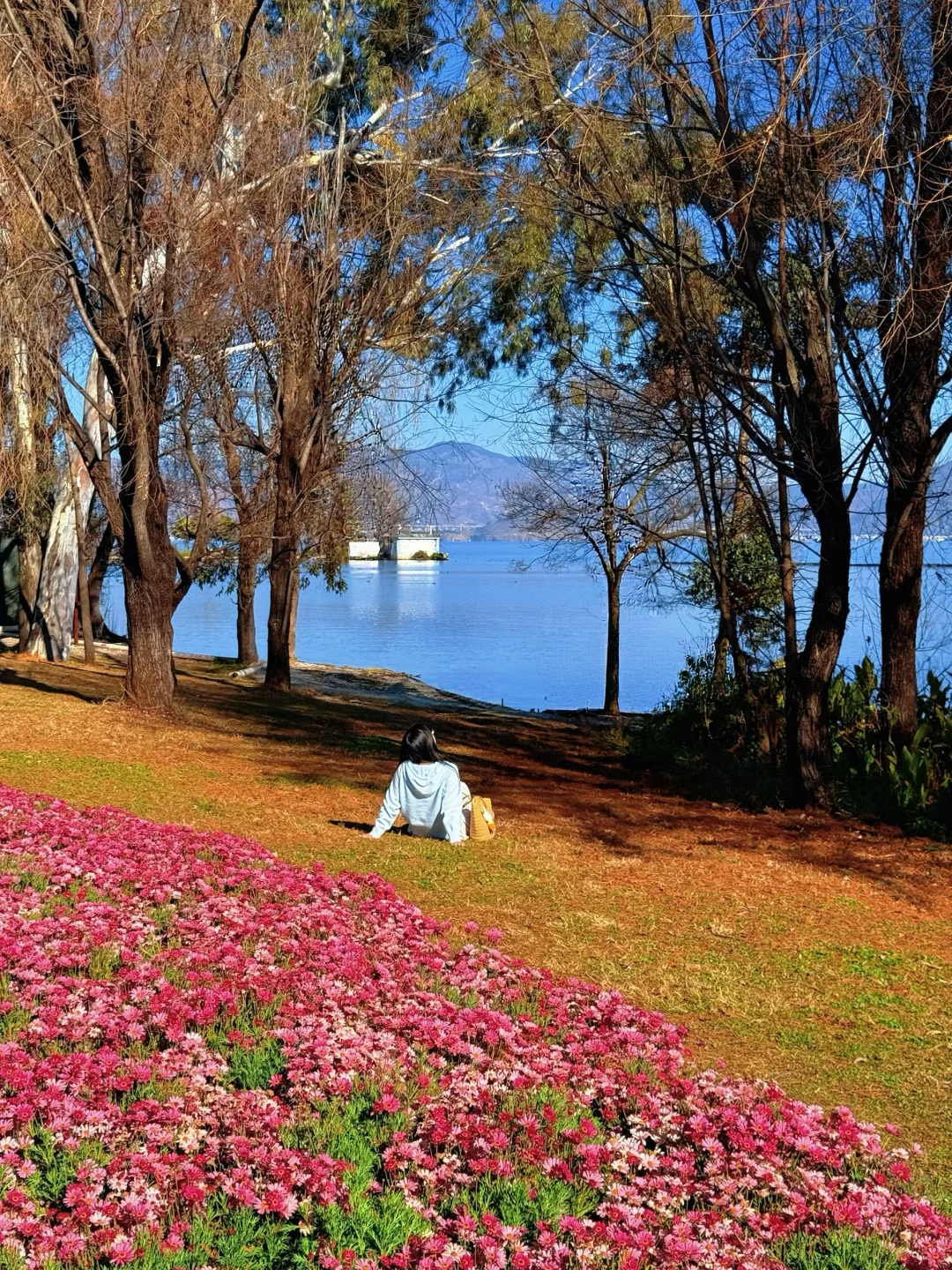 带你去看花海 大理的樱花季谢幕了 但洱海边的浪漫正在续写🌼 一整片明晃晃的玛格丽特 像打翻了大自然的调色盘 一直铺到洱海边 风吹过的时候 花浪和云浪一起轻轻摇晃 站在花田里突然说不出话 只觉得心里某个角落 被这片灿烂轻轻熨平了✨ 原来治愈有时候就这么简单: 一片花,一片海,一个放晴的下午 大理总能给你不期而遇的温柔💛 📍地址:导航洱海最美一公里(蟠溪S湾附近)