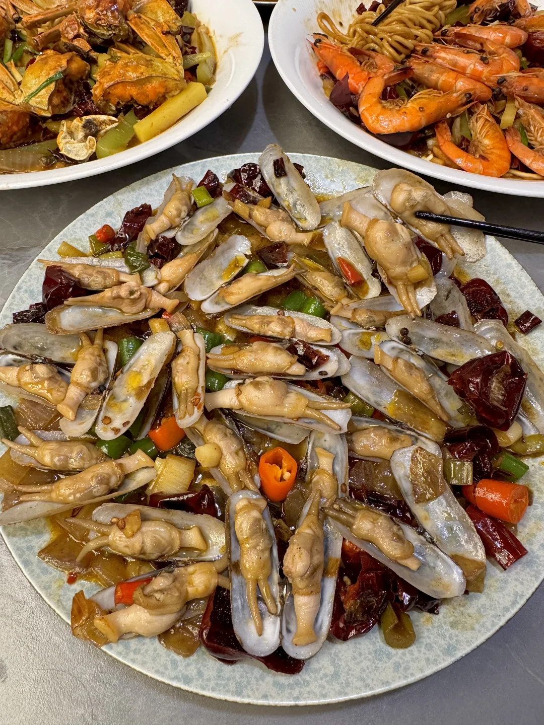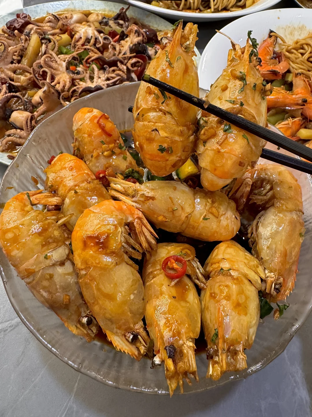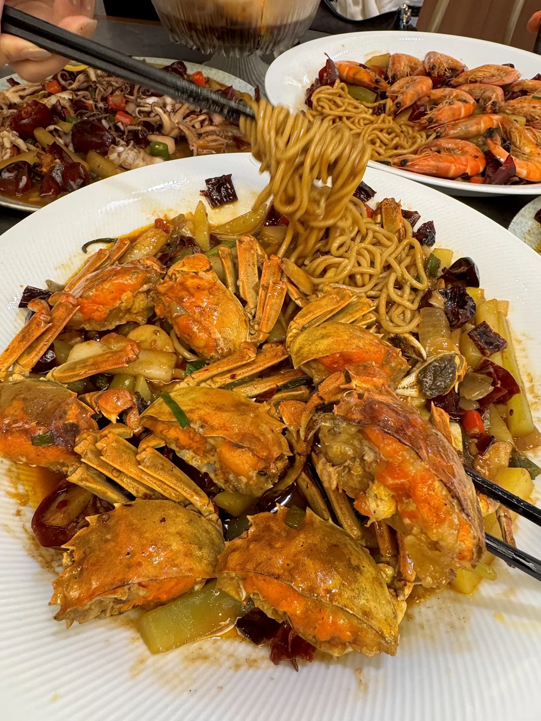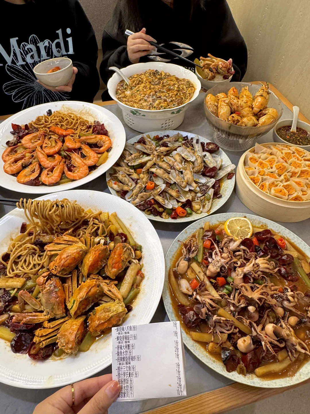 城北新开的鲜烧小海鲜,大大滴大闸蟹,蟹黄蟹膏很足,鲜甜大虾、三文鱼、海肠捞饭…分量hin足,海胆水饺海胆巨多!!辣炒八爪鱼肥肥的鲜鲜的,里面的莴笋土豆也好吃!!!!