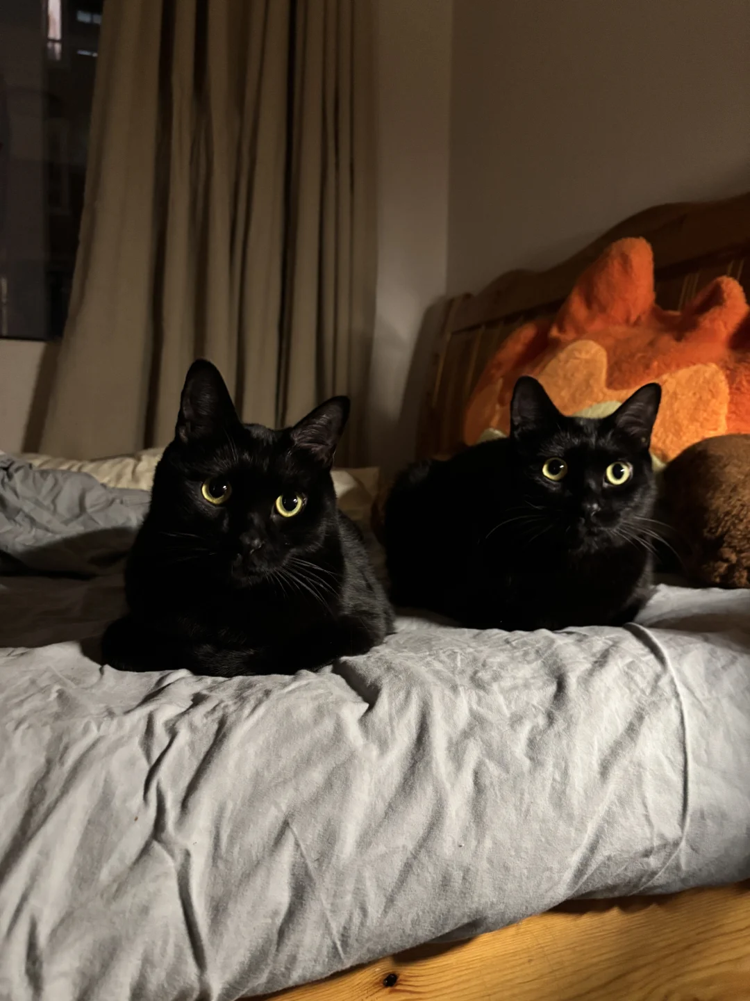 明明是一胎,但性格小黑是一只食欲旺盛的呆傻黑面包 而大黑则是一只活蹦乱跳的混世魔王 明明是同父同母的同胞兄弟。性格差异却非常大!但除了淘气这点外,两兄弟都非常喜欢和人在一起。即使碰到外卖员也要跑出去喵喵叫使劲蹭人家。 基因真的是个谜[大笑R] 大黑的减肥秘诀是:他只喜欢要吃的,小黑猫喜欢吃吃的,小黑狗负责收尾。大黑自己不吃,家里的其他两个生物越来越胖了[笑哭R]