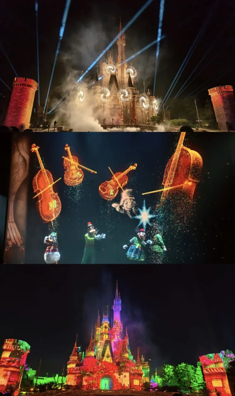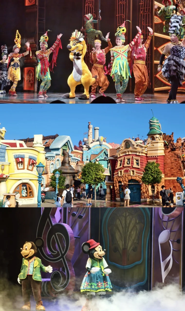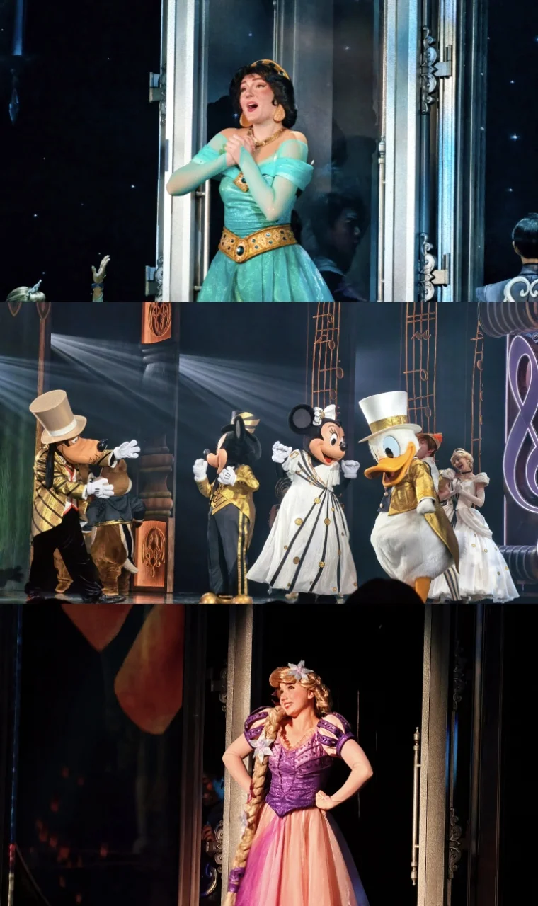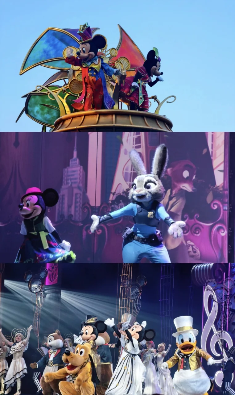 不用自己做攻略、不用盯着演出时间表赶场,看彩色玻璃窗上的美女与野兽图案,拍各种氛围感照片,这才是来迪士尼的正确打开方式啊!下午遇到了园区的演出,米奇和朋友们在舞台上又唱又跳,周围的小朋友们跟着欢呼,我也忍不住跟着挥手,那一刻真的觉得,迪士尼的魔法从来不分年龄~