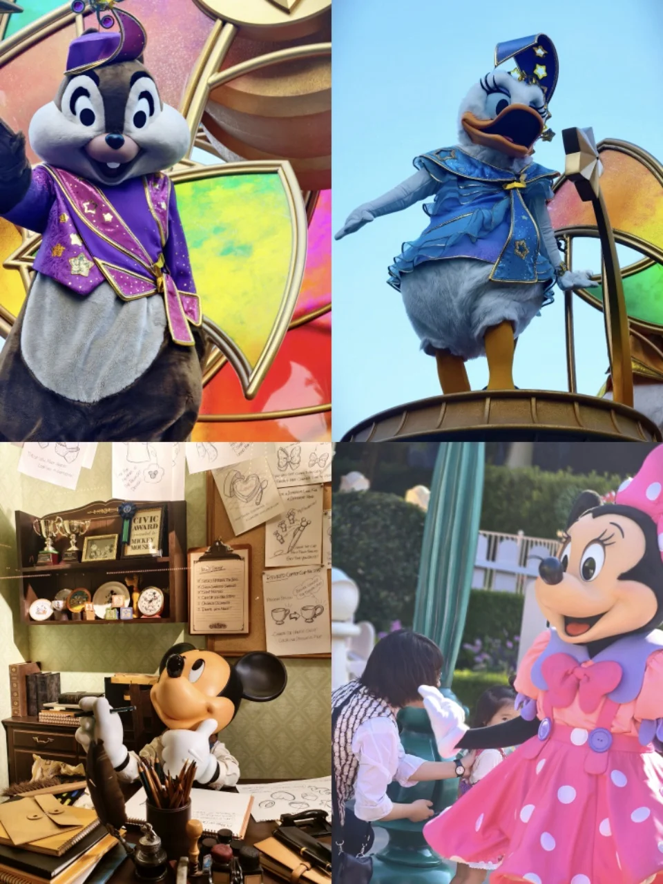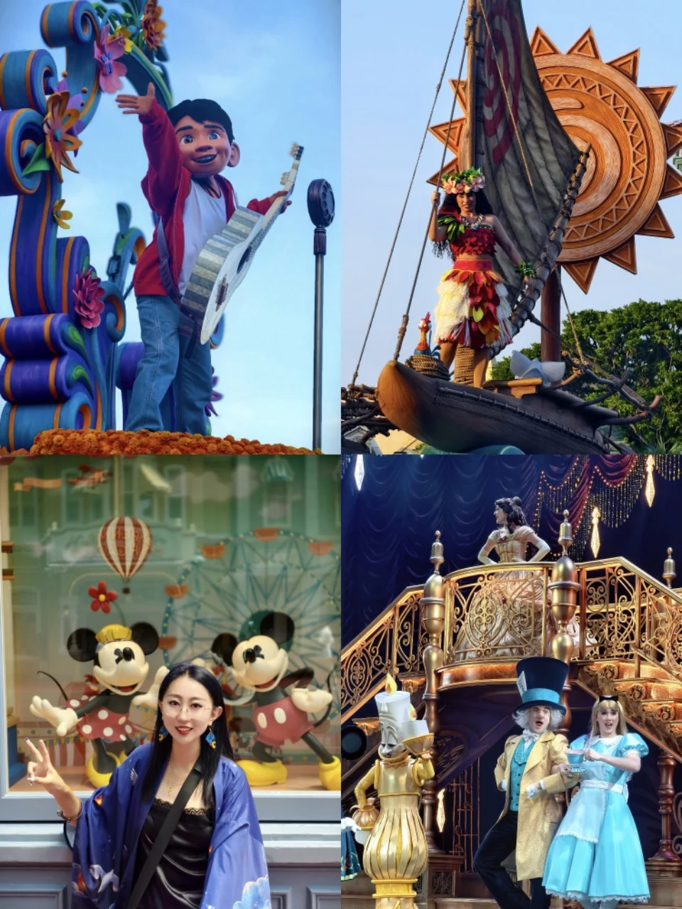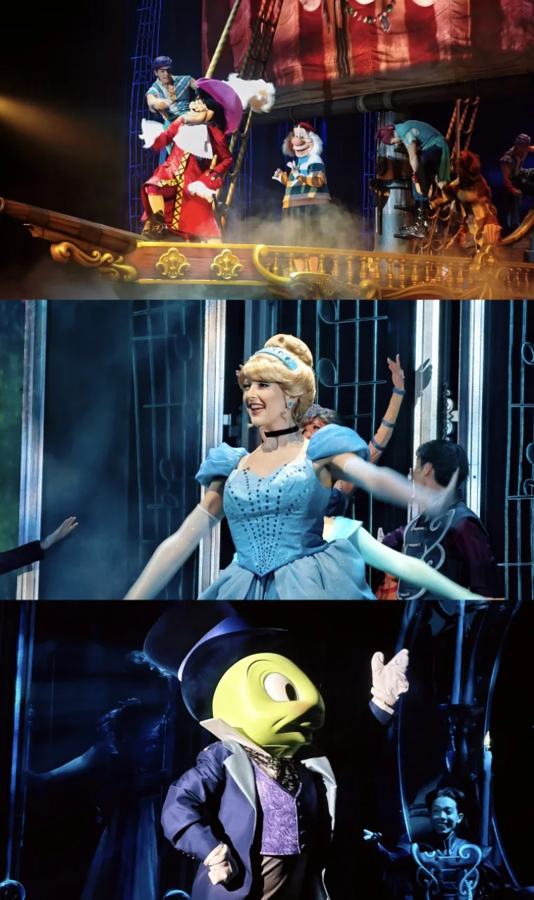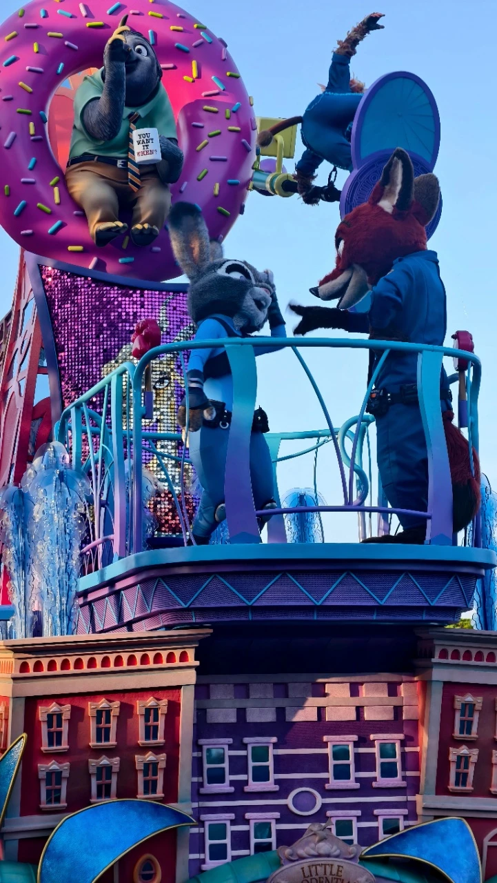 不用自己做攻略、不用盯着演出时间表赶场,看彩色玻璃窗上的美女与野兽图案,拍各种氛围感照片,这才是来迪士尼的正确打开方式啊!下午遇到了园区的演出,米奇和朋友们在舞台上又唱又跳,周围的小朋友们跟着欢呼,我也忍不住跟着挥手,那一刻真的觉得,迪士尼的魔法从来不分年龄~