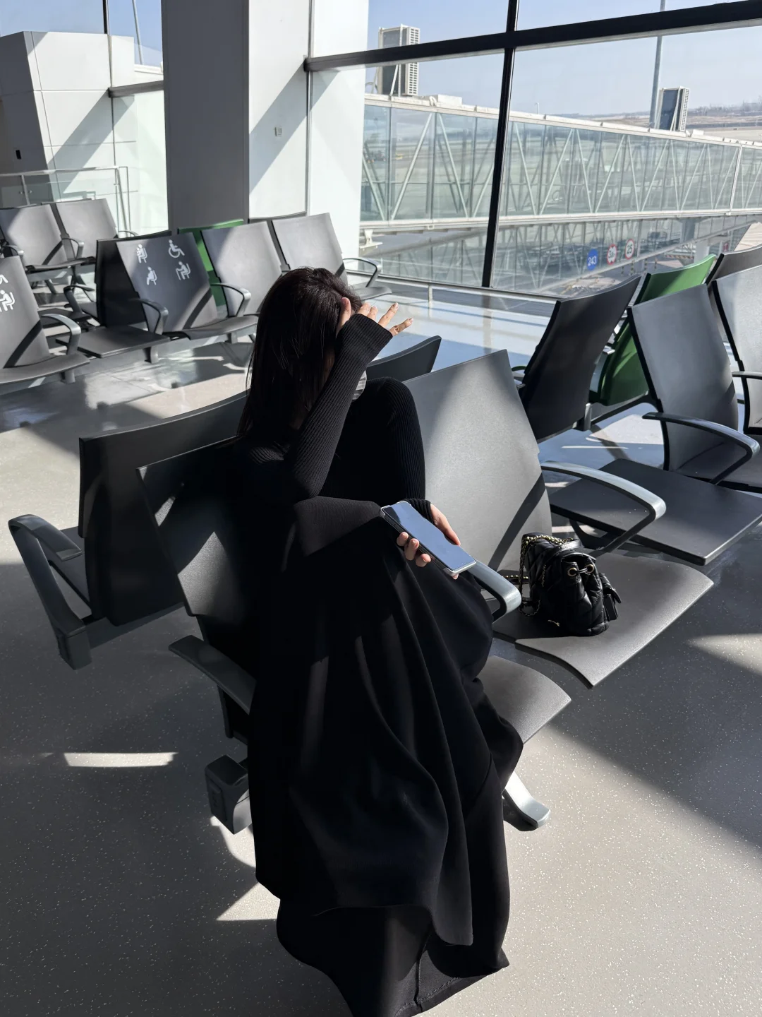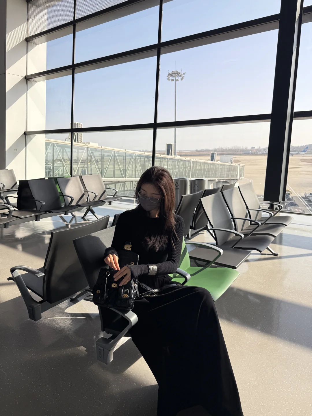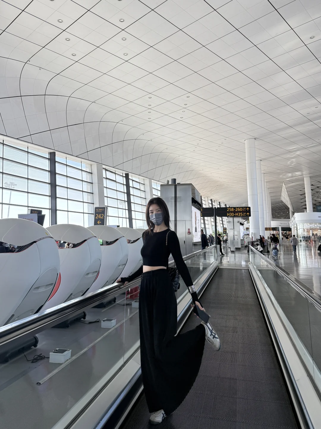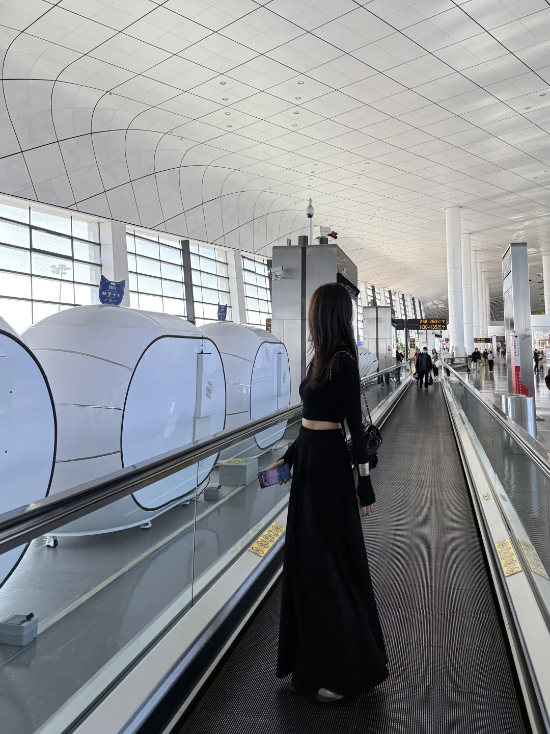 机场随拍✈️✈️ 瀑布一样的115cm黑伞裙