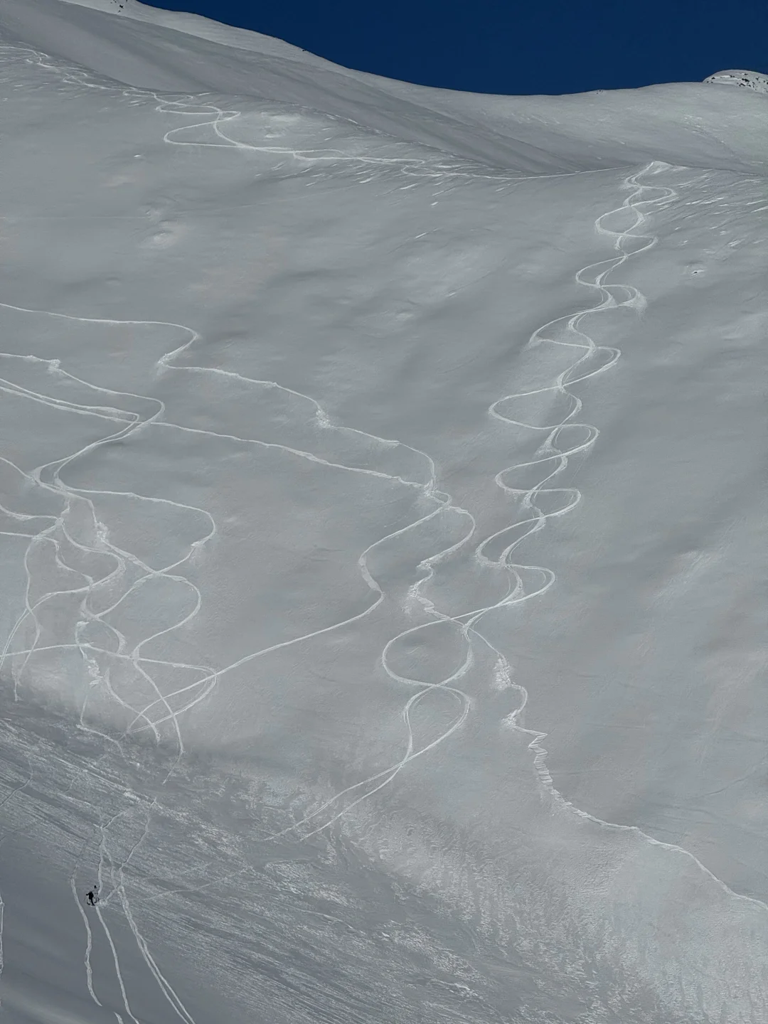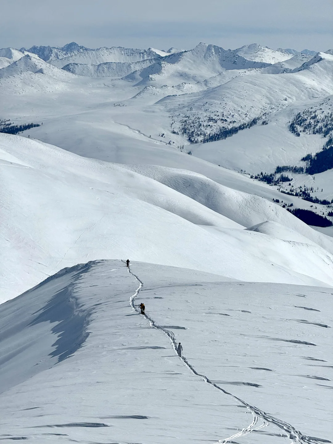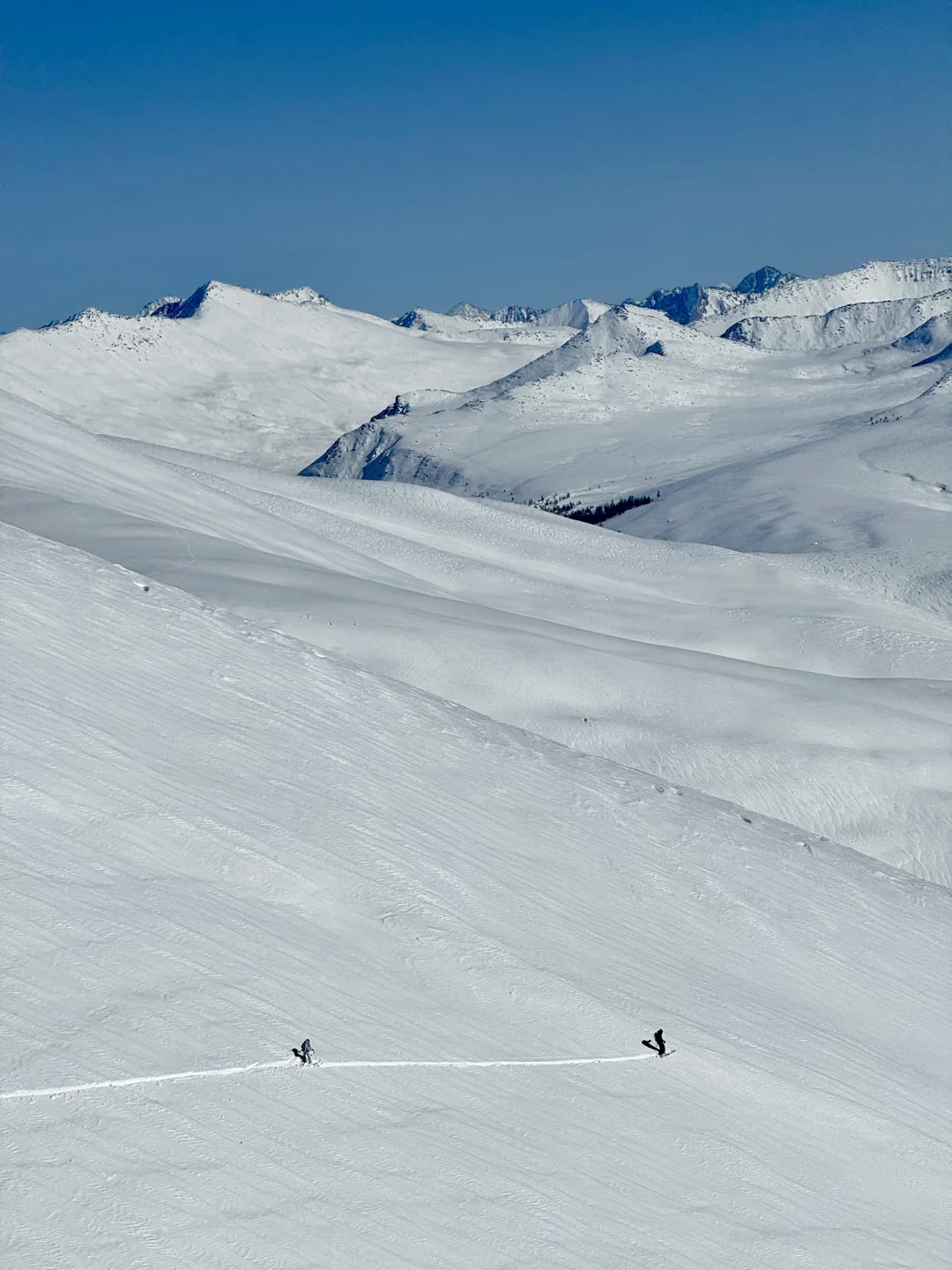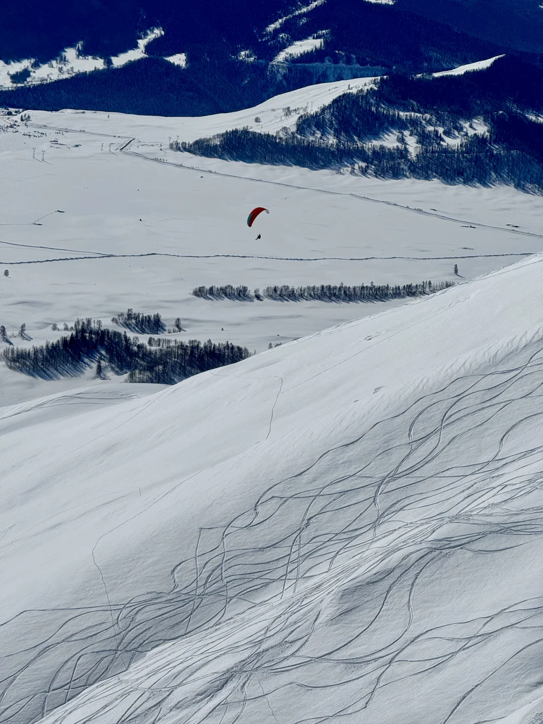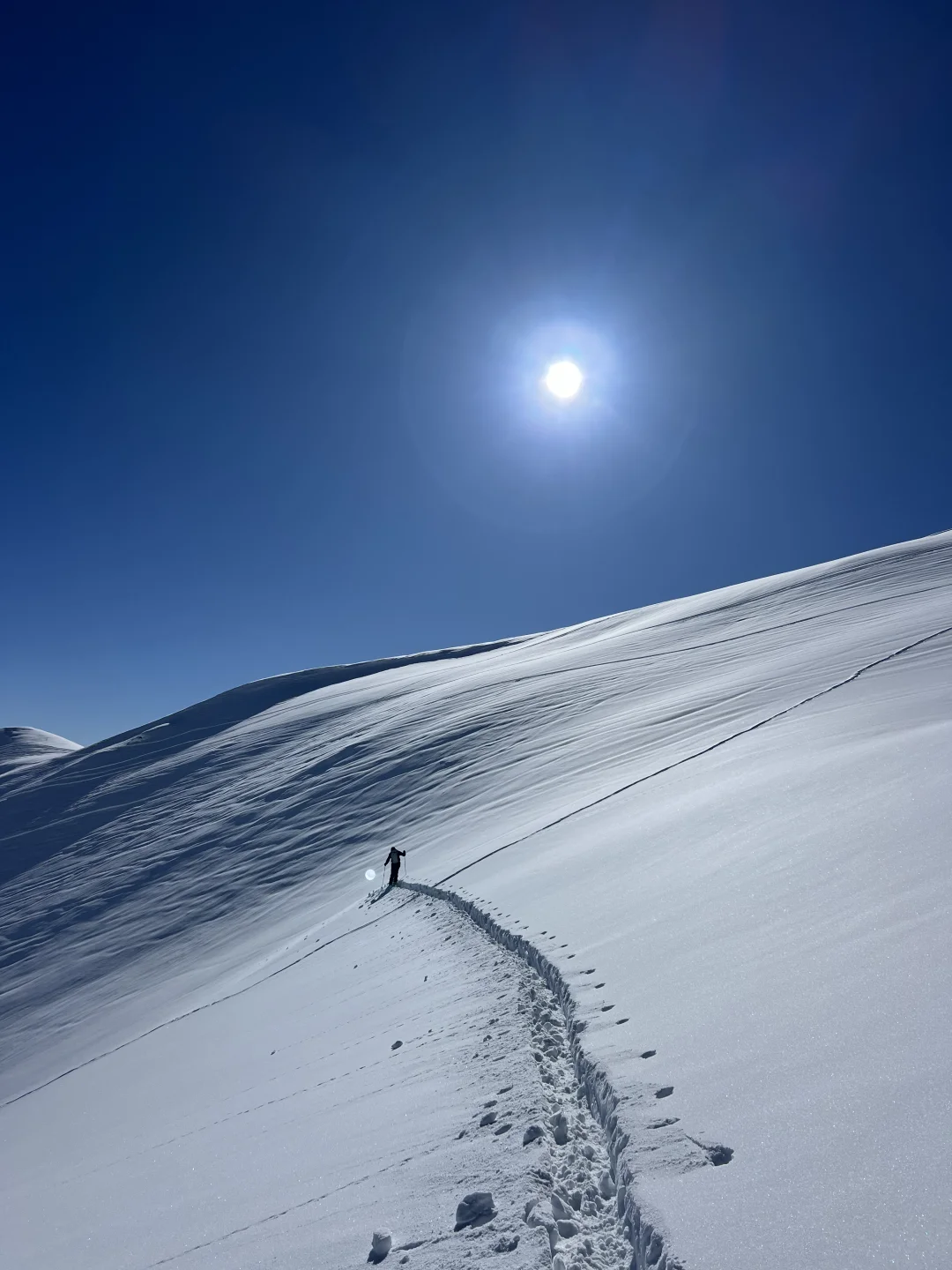 脚下的粉雪像云一样托起你,雪板切开无人踏过的雪层,整个世界只剩下呼吸声和板刃的沙沙响。没有雪道,没有规则,只有和山的对话。