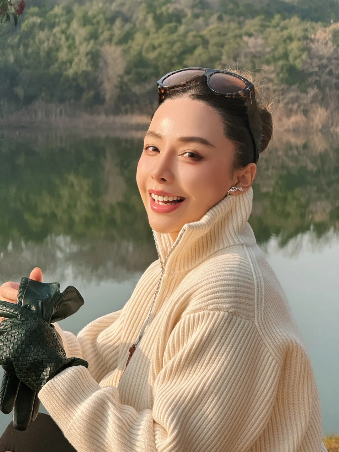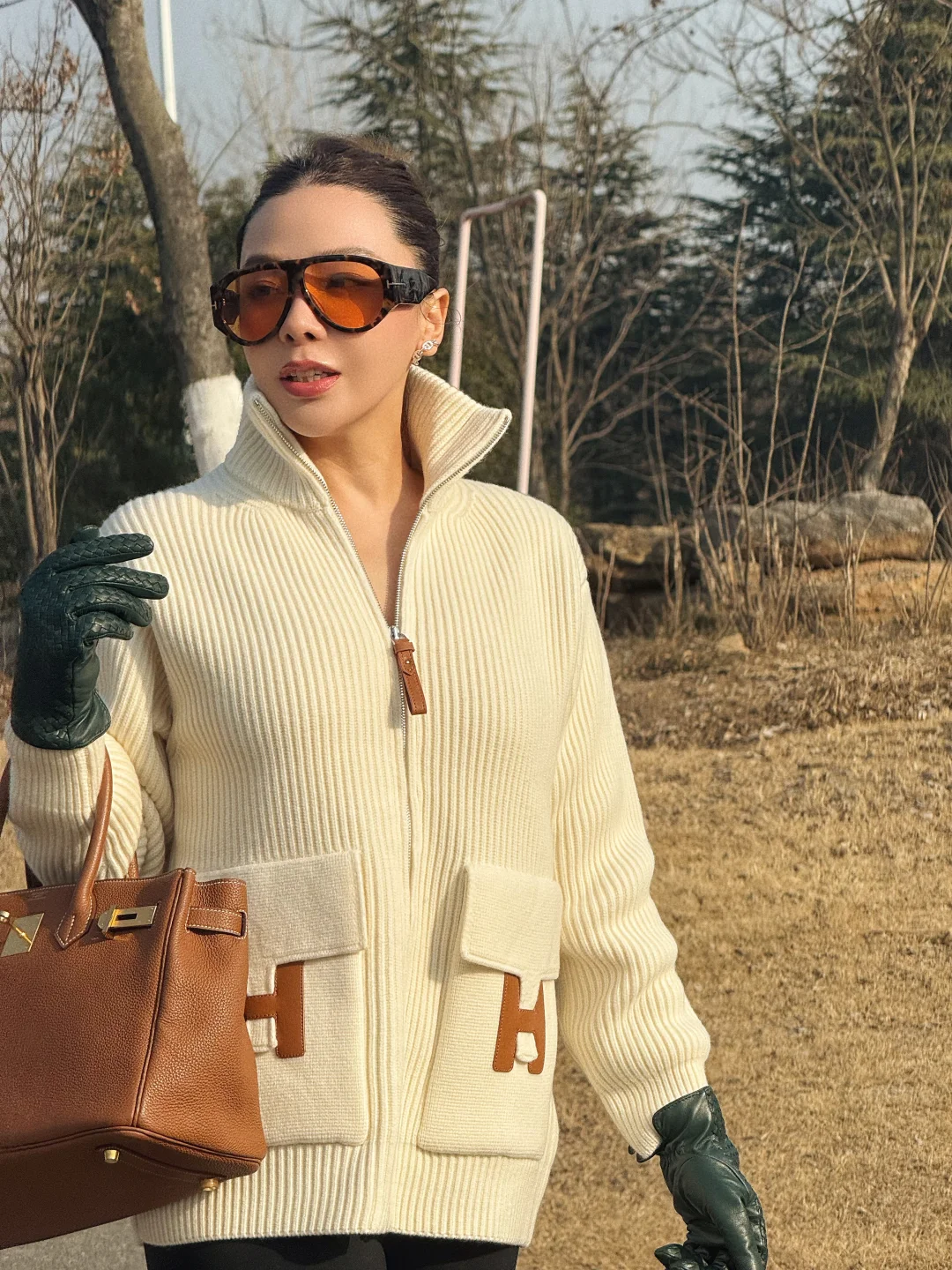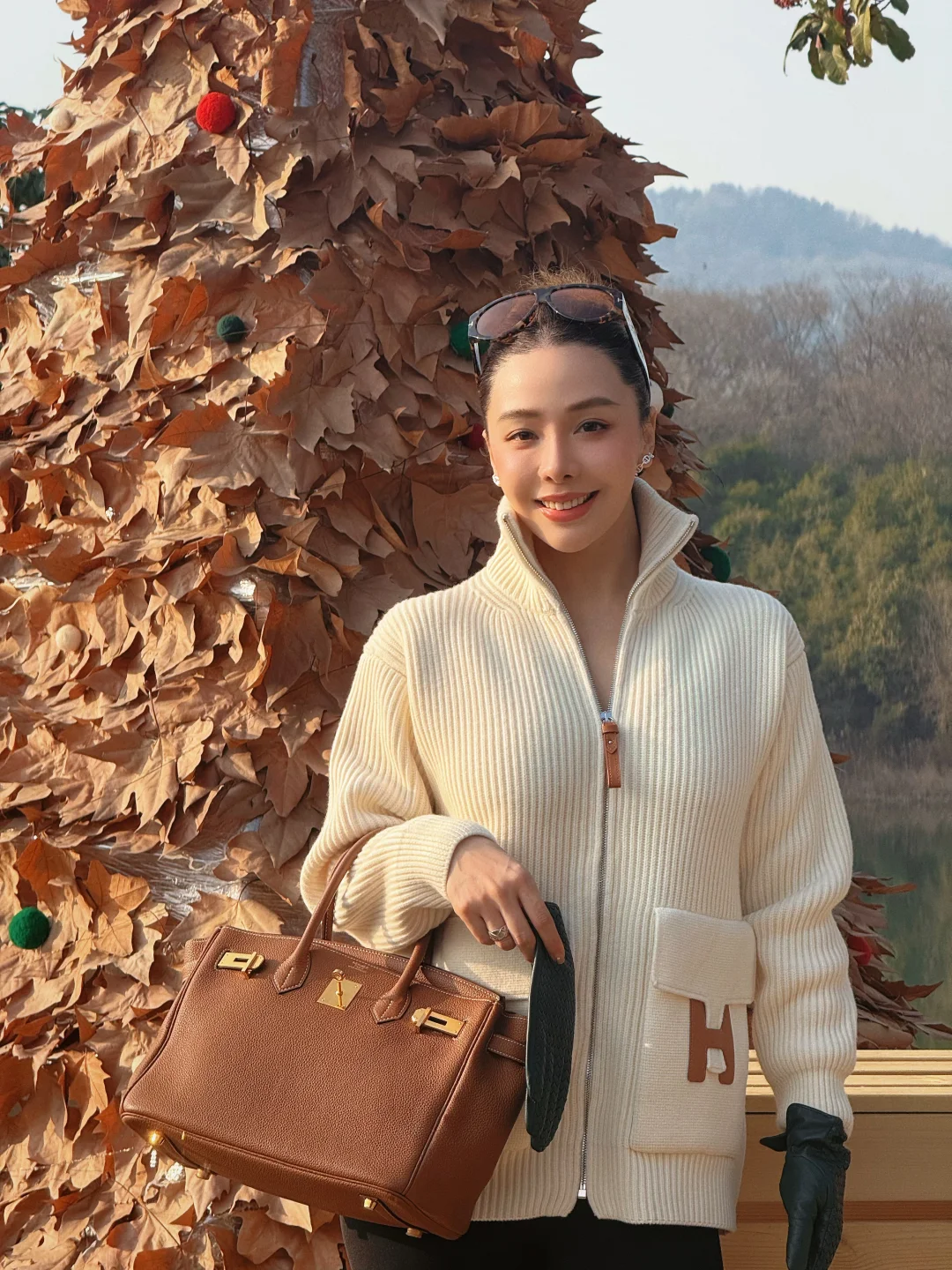 湖边咖啡店 一起去户外喝咖啡 湖畔下午茶 今日穿搭ootd 爱马仕毛衣开衫 秋冬毛衣穿搭分享 南京户外下午茶 气质穿搭